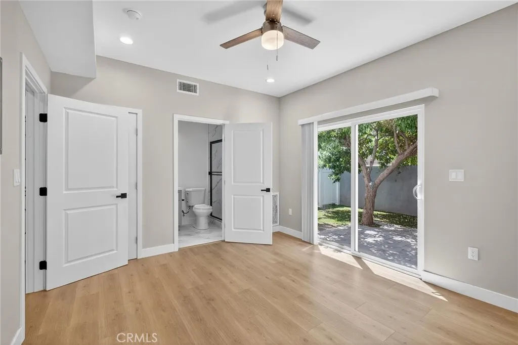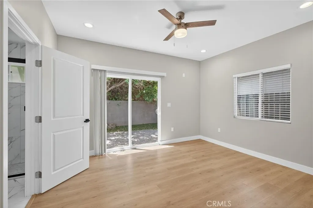 CALL FOR MOVE-IN SPECIALS!! FIRST MONTH’S FREE!! Beautifully remodeled two-bedroom, two bath unit with private rear yard, in a great area of Van Nuys. The two bedrooms include one primary bed with a private bath and the second bedroom has direct access to the hall bath. Additional features include wood floors throughout, heating and air conditioning, new appliances included, private washer and dryer in the unit, double pane windows for comfort and quiet and one parking space.