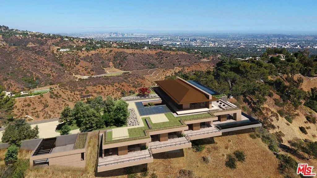 Development Opportunity. A triumph of modern architecture, masterfully conceived by the esteemed Walker Workshop, whose visionary designs have captivated the world. Standing proudly atop a majestic mountaintop, this 17,500 SF residence is an unparalleled work of art, the only one of its kind. Prepare to be mesmerized by the panoramic 270-degree views that stretch as far as the eye can see, with a breathtaking 96′ wide opening that provides an uninterrupted vista of the entire Los Angeles landscape. A true marvel of engineering, the structure seems to defy gravity, effortlessly floating above the city below. With a discreet lower level that harmoniously blends into the natural surroundings, this property offers a private sanctuary for those who seek respite from the bustle of city life. Bathed in natural light that spills through the perimeter, the lower level reveals stunning vistas of downtown to the east and the Pacific Ocean to the west. A tropical water garden gracefully cuts through the building, leading to a sunken courtyard that evokes a sense of tranquility and serenity. Every detail has been meticulously considered, resulting in a harmonious balance between nature and architecture that is truly awe-inspiring. This remarkable property can be delivered RTI (permits ready to issue).
