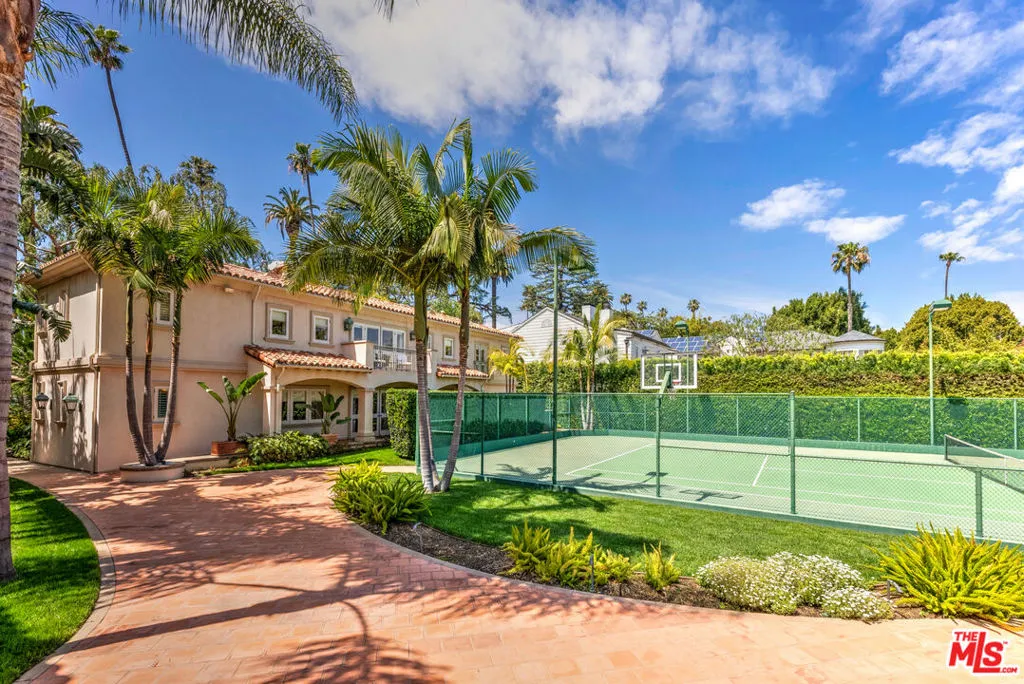Newer beautiful Mediterranean gated estate on one of the best streets in the Beverly Hills Flats. Private from the street, high ceilings, 4 bedrooms ensuite up and one ensuite bedroom down. Lovely living room and dining/kitchen, 2 2-car garages and a full-size championship lighted tennis court on a half-acre of land. There’s a stunning full-size chefs outdoor kitchen. This property was built as the “guest house for 812 N Bedford”. The square footage is approximately 4100 sf (see floorplan). House can easily be expanded and tennis court can be altered into a sports court to create an amazing back yard. There are endless possibilities! *812 and 814 N Bedford can be sold as a “compound”.