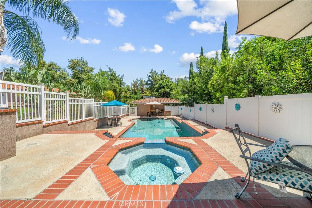 This home comes loaded with extras: a circular driveway, gated RV Parking with 30 amp electric, a beautifully landscaped front yard, a gated sparkling pebble tech pool and spa with private cabana (bathroom + shower + changing room), an expansive covered outdoor living space with lighting, fans, hardwired speakers, and multiple seating areas. There’san attached large 3 car garage plus parking for up to 3 large vehicles. PLUS a 1680 sqft Multi-Purpose Outbuilding – 3-car garage plus a spacious enclosed 864 sqft flex room perfect for a game room, studio, gym, or office. AND with PAID SOLAR, your energy savings start immediately.