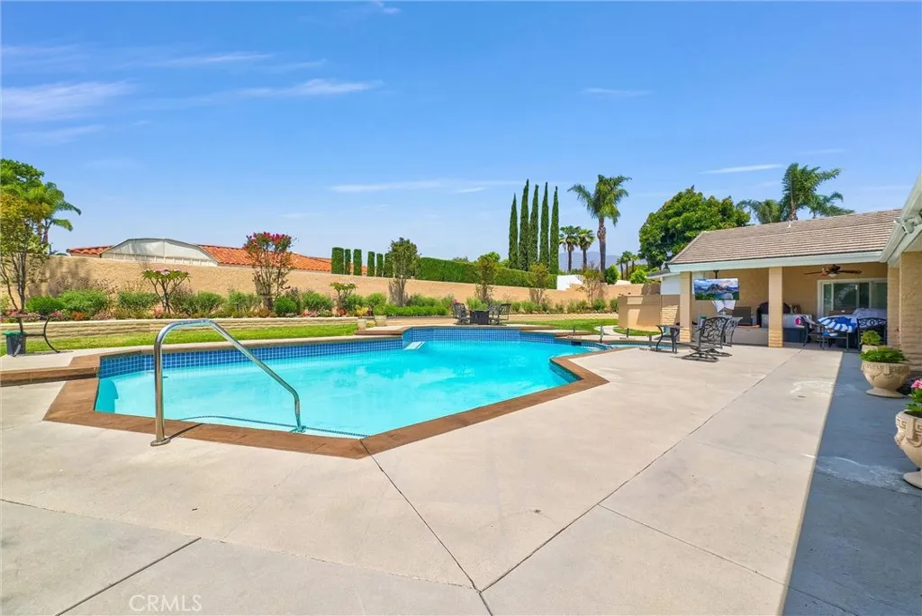 Just steps away, that backyard oasis awaits! You’ll spend lots of time on the long covered patio — with space for grilling, dining & entertaining. Your guests can take a dip in the beautiful pool&spa, while Fido runs around in the lush lawn. This property also includes fruit trees and attractive garden boxes along the fence line.