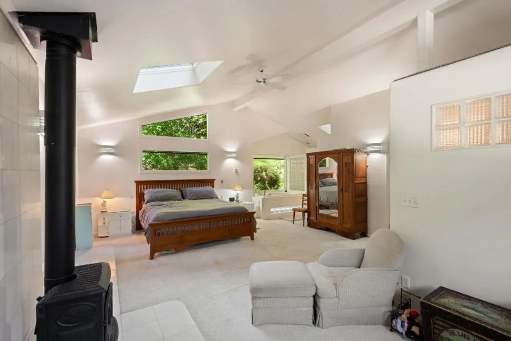 Sunlit Scotts Valley Retreat w/ ADU that rented for $2300 a month! 10 minutes from the shops, dining in Scotts Valley & Highway 17, This property blends privacy and country charm,. surrounded by trees and bathed in natural light, 4 bed/ 2 bath, with large master suite, private bath, deck & entrance, offering a quiet retreat with tranquil views. The downstairs is designed for comfort and function, with a bright great room, cozy family room, full bathroom, laundry room, and a warm kitchen that flows naturally for gatherings or everyday living. A detached 1-bedroom, 1-bath guest cottage sits just steps away perfect for hosting extended family, creating a private office, or generating rental income with washer/dryer hooks ups! The grounds are as functional as they are scenic, featuring large creek frontage, two-car garage, 2 custom-built sheds, a carport with added storage, and a wrap-around driveway for easy access and guest parking. An upper gated driveway offers room for an RV, boat, or multiple vehicles, and two more storage units.