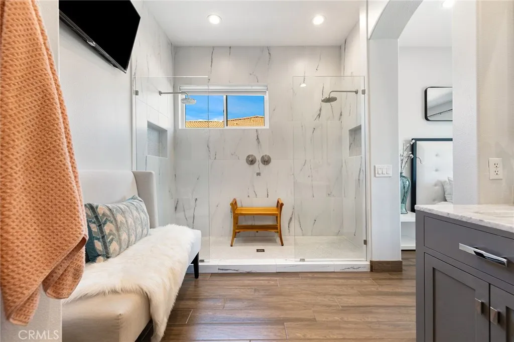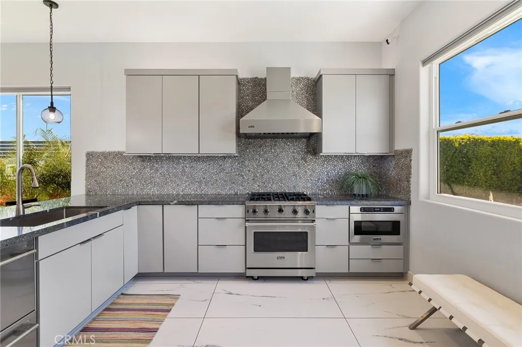 At the heart of the home is a designer kitchen outfitted with premium Viking appliances—elegant yet functional, ideal for both relaxed mornings and elevated entertaining. Natural light pours through brand-new windows and sliding glass doors, while newly remodeled showers and a brand-new A/C unit enhance everyday comfort.