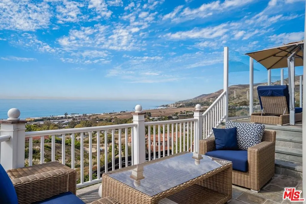 Breathtaking ocean and mountain views from this gorgeous 4-story Cape Cod-style estate is the ultimate in luxury & understated elegance. Perfect for grand entertaining & comfortable family living. The 5 bdrm/6 ba gated home w/hardwood floors and panoramic mountain and ocean views throughout, offers a stunning entry w/sweeping staircase; formal living room w/bay windows, fireplace & glass doors that open to a resort-style outdoor entertaining area with pool/spa, fire pit; formal dining room w/coffered wood ceilings; gourmet kitchen w/wood Island, Marble counter tops & high-end appliances; large family/media room w/fireplace; romantic owner’s suite w/fireplace, 2-large closets & spa bath; Jack & Jill suite w/sitting & office area; sweeping ocean view 4th-floor rotunda/office; 3-car garage plus sauna & additional bonus rooms. Separate and detached Large Guest House w/ wrap around decks and ocean views. Expansive grounds w/ a charming waterfall. Privacy abounds. Includes secondary solar panel power system. Available Short or Long term