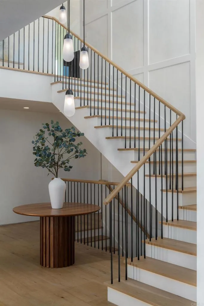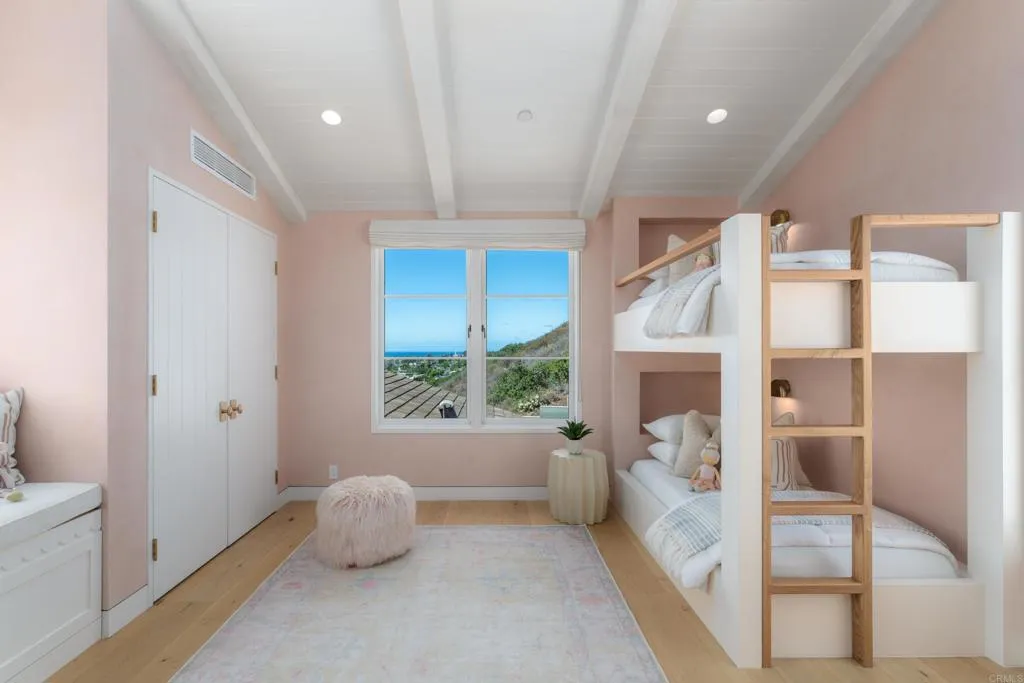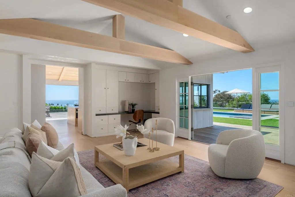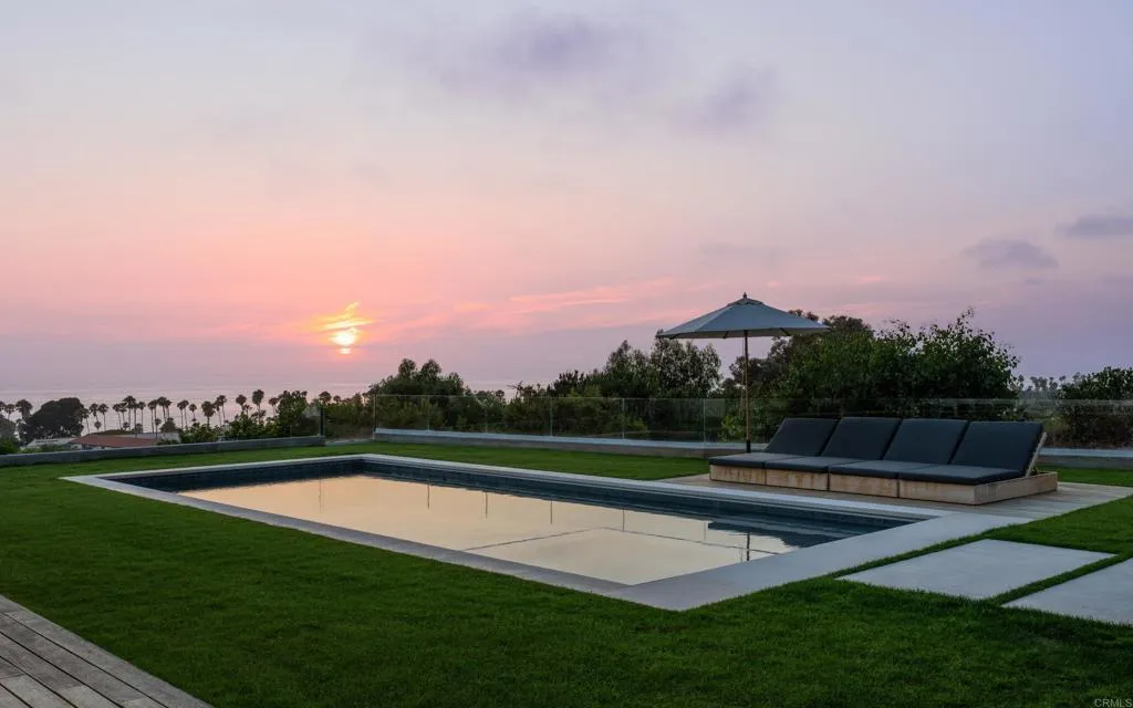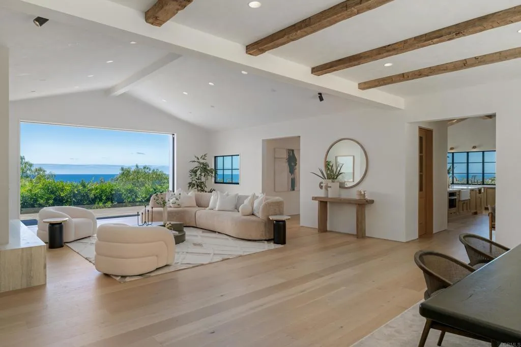 Panoramic ocean views and ultimate privacy await in this brand-new California Coastal home, ideally situated behind a gated entry on a private street in Upper Hermosa. Indulge in a lifestyle of unparalleled quality and craftsmanship, where no expense has been spared. From the Venetian plaster walls to the 9-inch European White Oak floors and high-end appliances, every detail exudes sophistication. Steel and glass windows and doors frame the gorgeous coastline, flooding the interiors with warm, natural light. The generous floor plan seamlessly blends indoor and outdoor living, opening to an impressive ocean-view deck and yard. A driveway lined with seventy-year-old olive trees leads to a welcoming entry courtyard with a fire pit, while a sparkling pool with its own pool house with fireplace promises endless hours of enjoyment. This expansive property offers an abundant living space with a six-bedroom main house, pool house and a detached one-bedroom guest house above the garage, with its own living room and kitchen. Embrace a life of tranquility and luxury in this breathtaking coastal sanctuary.
