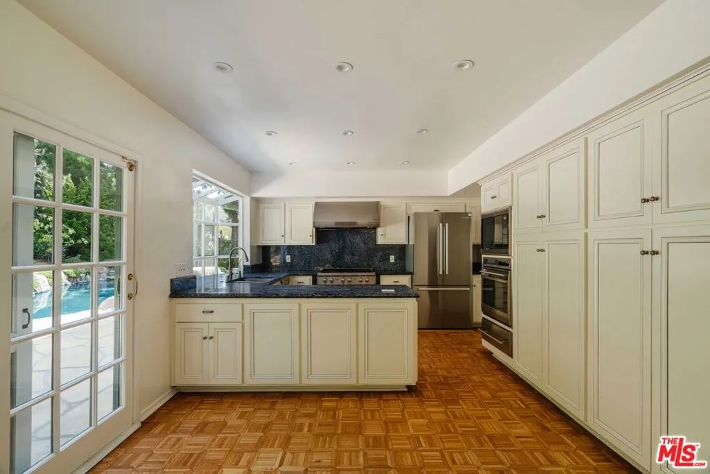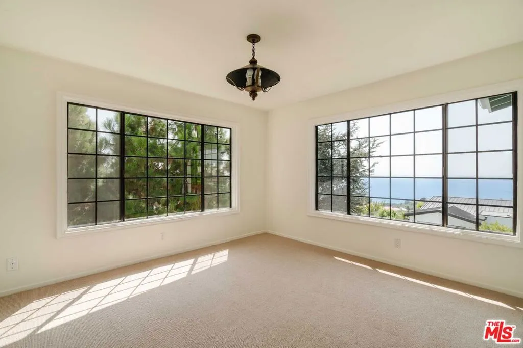 This traditional home, situated above the Getty Villa in the prestigious Pacific View Estates, offers breathtaking panoramic ocean views. Guests are welcomed by an expansive formal living room with a fireplace that flows out to the ocean views. A dining room, kitchen and an informal dining area open to the private backyard, featuring a large patio, lagoon-style pool/spa, fruit trees, and a built-in BBQ areaperfect for entertaining. The lower level is completed by a cozy family room, guest bedroom, laundry room with direct access to the two-car garage, and two well-appointed bathrooms. Upstairs, find three bedrooms including the primary suite, as well as an office. Ideally located just minutes from the Palisades Village, Malibu, Santa Monica, and just up the street from the beach, this home offers the ultimate coastal lifestyle.