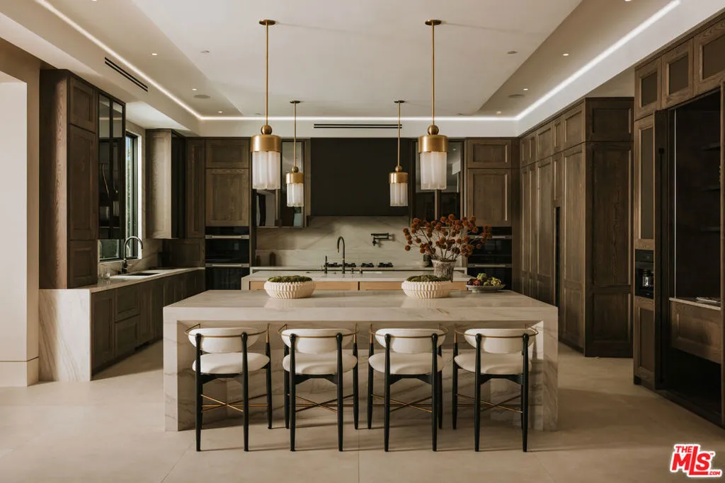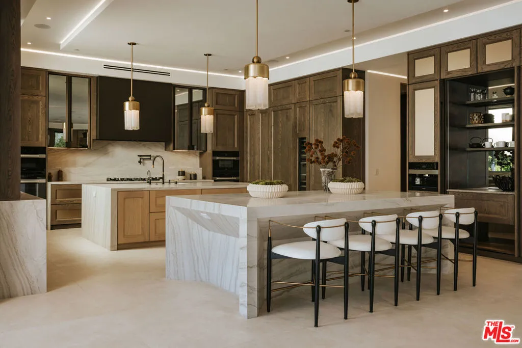 Set behind gates on the prized 600 block of the Beverly Hills Flats, this newly constructed contemporary estate spans an estimated 11,000 square feet, delivering a rare caliber of luxury and craftsmanship. A gated motor court leads to the formal entry, where soaring ceilings and a cascading chandelier frame the central staircase. At the heart of the home is a Spanish-designed gourmet kitchen, combining bespoke finishes with top-tier appliances and effortless indoor-outdoor flow. Expansive living spaces are framed with Euroline steel doors and windows, flooding the interiors with natural light and capturing views of the landscaped grounds. Designed for both large-scale entertaining and everyday ease, the home features a glass-enclosed wine showcase, private theater, wellness suite with sauna, turf basketball court, and a resort-style pool. Upstairs, the primary suite offers a private sanctuary with dual walk-in closets, a balcony, and verdant backyard views. A rare offering on one of Beverly Hills’ most coveted streets, 620 Bedford is a bold statement in privacy, design, and modern luxury.