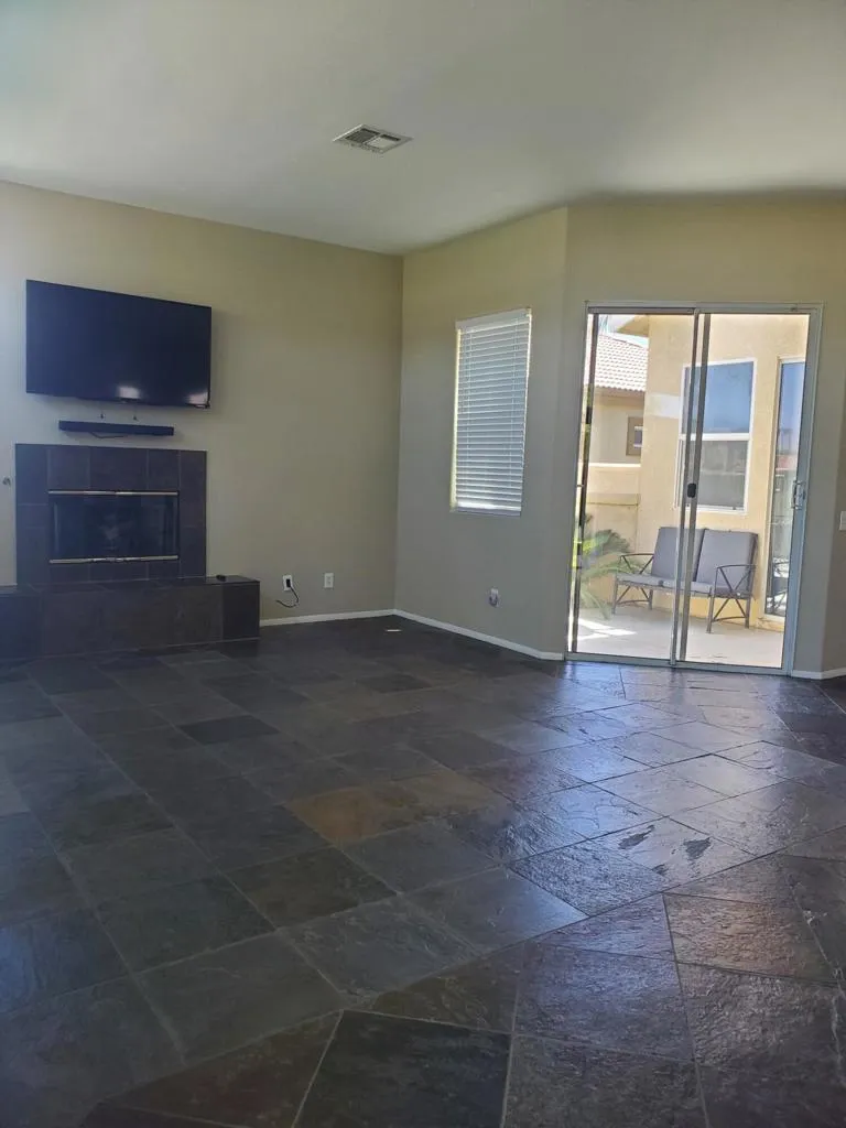 Very nice price adjustment now $2900.00 Indian Palms community is a very nice community. This home feature 2 bedroom plus a Den, 2 bathrooms. enter the home into to a foyer. Kitchen has slab granite countertops, Refrigerator, Range, built-in Microwave. The home has vinyl flooring and tile throughout. Very clean and updated. The open floor plan with a fireplace in the living room and a door to a side private patio and the living room slider leading out to the back yard with a pool/spa/and putting green. Home is on the golf course. Large side patio with wood burning fireplace. The primary bedroom feature a large bathroom with a shower and a soaking tub, double sinks large counter space.. Large walk in closet. 2nd bedroom w/walk-in closet. Den area is nice and spacious. HOA takes care of the front and back yards landscaping. There are 3 Community pools/spa and the Lifestyle center with sport courts, Pickleball. Bocca ball courts, tennis etc. Work out class and nice gym. Home is mostly unfurnished but furnishing that are there can be removed. Separate laundry room, 2 car garage. Indian Palms has a restaurant and bar within the gates and golf is a public course pay as you play. Community is very close to Starbucks, Grocery stores, Fast Food, Banking, Walgreens. Exterior of the home has been newly painted.