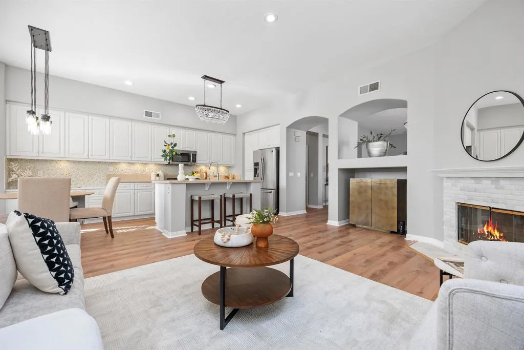 Striking NEW FLOORS! *** It’s a Beauty! The ease of ONE-STORY LIVING! .17 Acres.*** A great floor plan with a private primary Bedroom SUITE including walk-in closet, plus mirrored slider closet, separate tub and large shower, with direct access to the patio (a perfect spot for a spa). *** An amazing KITCHEN with built-in desk, 5-burner cooktop, and Convection oven…eat/visit from a built-in counter as well as the kitchen’s ample eating area, all OPEN to the FAMILY ROOM where the marble fireplace accents the room-of-entertainment along with the well-sized niche. *** Tantalizing lighting shimmers elegantly throughout the home. *** Don’t forget the LAUNDRY room filled with ample cabinetry plus, LG washer & dryer! *** Add to the FUN with the friendly neighbors, walking trails, play areas, and the beautiful refreshing pool. What’s not to love, when it’s a WOW HOUSE?
