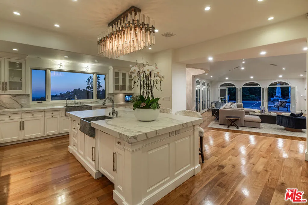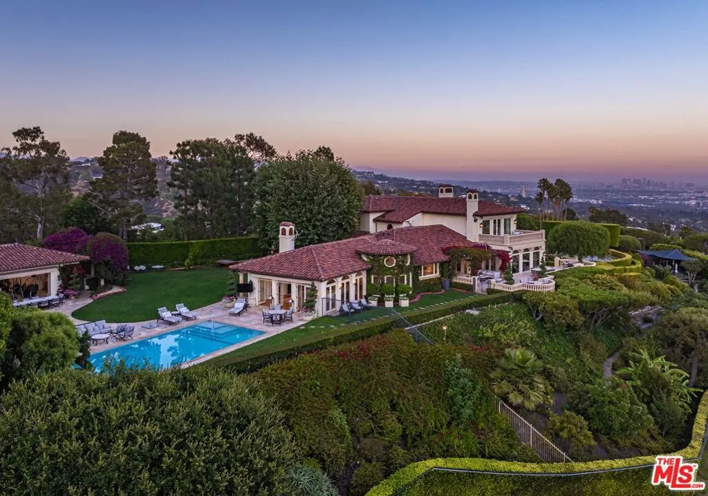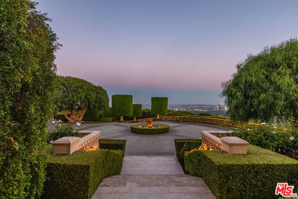A legendary Beverly Hills estate with rich Hollywood lore, set on its own private 2.37-acre mostly flat promontory with head-on ocean and city views, is now offered following a multi-year renovation and reimagining. Located adjacent to the Pritzker, Murdoch, and future Gates family estates, this Modern Tuscan masterpiece was home to Ricky Martin for many years and previously owned by English actor Michael Caine. Prior to the Caines, the estate was owned by Doris Day’s family. Poised behind tall gates and approached via a long, curving, tree-lined drive, the property unfolds into a sprawling motor court with parking for 20+ cars. The grounds include a luxurious main residence, guest house, lighted tennis court with pavilion, separate children’s playground and play court, and a dedicated security house – all surrounded by vast lawns, lush gardens, and mature landscaping. An orchard, herb and cutting garden, and a separate rose garden provide fresh flowers and fruit. From the moment you arrive, the most striking feature is the panoramic views – stretching from Mid-Wilshire, over Santa Monica and the ocean, all the way up the coast to Malibu. These sweeping vistas can be enjoyed from nearly every part of the estate, including all the primary rooms, patios, yards, and terraces. Even the pool is positioned to allow for ocean views while swimming. Exceptional privacy is ensured, with no neighboring homes overlooking the property. The main residence, while expansive, is thoughtfully designed for comfortable family living. A grand kitchen/living/great room opens directly to the pool area, lawns, and breathtaking views. An oversized theater is richly appointed and includes a snack room and two powder rooms. Each bedroom offers views – either of the ocean and city or tranquil garden settings. The bright and elegant primary suite features its own terrace with city and ocean views, a sitting room, dual bathroom and dressing areas, oversized closets, and a large flexible space ideal for a nursery, massage room, office, or additional wardrobe. State-of-the-art home, perimeter, and grounds security systems are actively monitored from the security house, with additional measures discreetly integrated into the main residence. This exceptional Beverly Hills estate offers an unmatched combination of privacy, history, and panoramic views presenting a rare opportunity to own one of the area’s most storied and breathtaking properties.