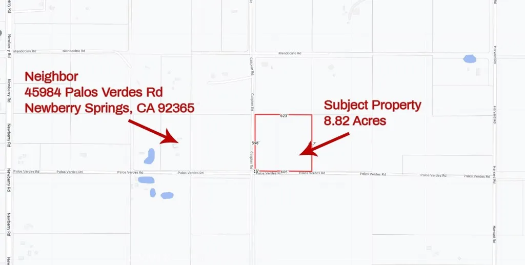 Claim your own 8.82-acre corner lot (APN: 0532-121-34-0000) in the welcoming high-desert community of Newberry Springs. Perfectly situated at the intersection of Caspian Road and Palos Verdes Road, this versatile property offers the space and freedom to create your vision—whether it’s building a custom home, starting a farm, or investing for the future.