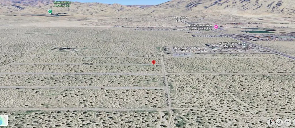 Discover an exceptional opportunity with this spacious lot on Arnold Ave in Desert Hot Springs, CA 92240 (APN: 657-022-019), ideally positioned near the vibrant heart of the city while offering the tranquility of open desert surroundings. Enjoy breathtaking mountain views and stunning desert landscapes just minutes from local conveniences, including shopping, dining, and the rejuvenating spas the area is known for. The property’s prime location places you close to Palm Drive for easy access to nearby communities and within a short drive to Mission Lakes Country Club, making it an ideal setting for those seeking both peaceful seclusion and connectivity. This is your chance to secure a desirable piece of Desert Hot Springs in a growing and scenic area. ****No soils reports, surveys, etc., have been done. Buyer and buyer’s agent to verify all information with the city or county for allowable uses and requirements and rely on their own investigations. **Buyer responsible for checking zoning, utilities, permits and exact property boundaries. ****
