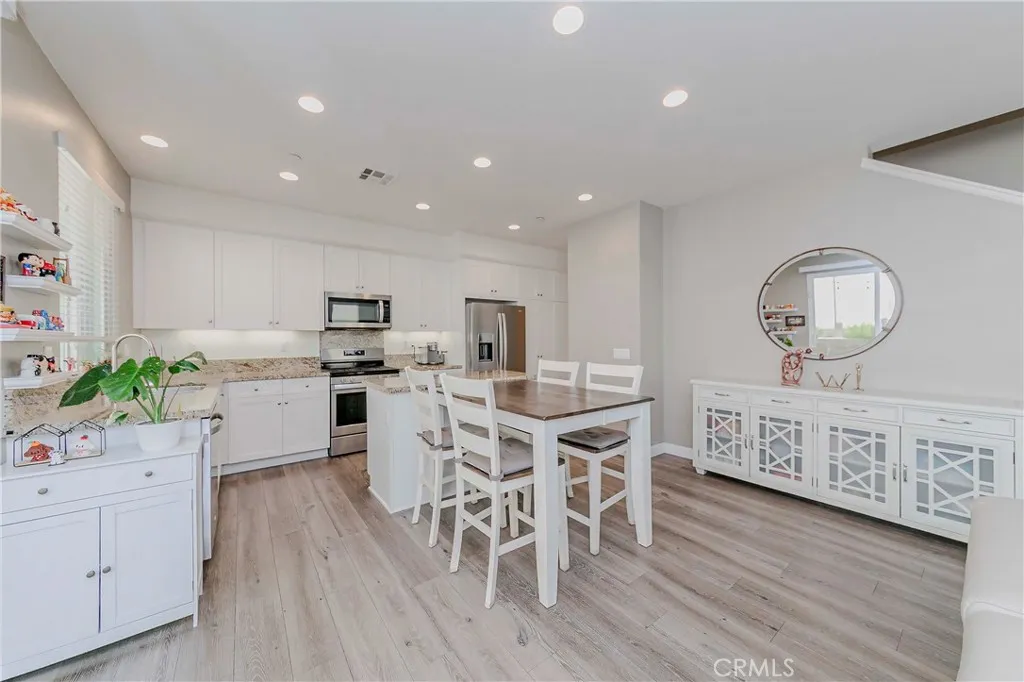 Step inside through the extra-wide entry foyer with a coat closet. Be greeted by high ceilings and the easy-care elegance of durable Luxury Vinyl Plank flooring with upgraded flat baseboards throughout. The spacious living/great room flows seamlessly into a gourmet kitchen with an island, white cabinetry, granite counters, stainless steel appliances (range, microwave hood, dishwasher), recessed lighting, and a window over the stainless steel sink overlooking the private, paved patio — perfect for outdoor entertaining. A convenient downstairs powder room accommodates guests with ease.