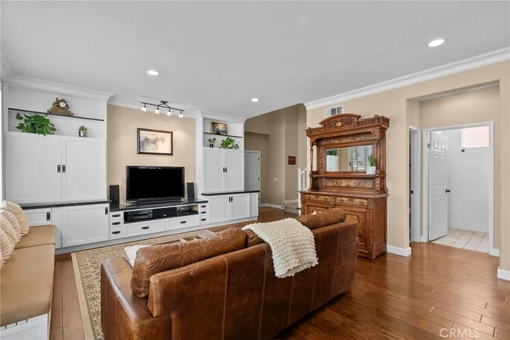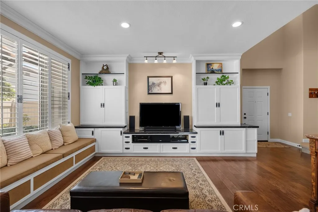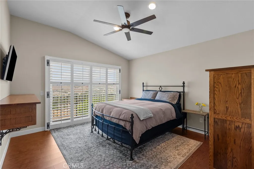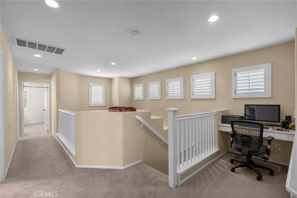 Inside you’ll find gorgeous, engineered wood floors, recessed lighting and wooden plantation shutters with hand-forged hardware that add timeless sophistication. The kitchen is a baker’s dream featuring a convection Bosch stove, ultra quiet Bosch dishwasher, upgraded cabinetry with under cabinet lighting and a striking custom island. The living room includes a custom-built entertainment center and a settee with ample storage, making this home as practical as it is beautiful. Retreat to the luxurious primary suite that features a spa-like bath with a Slipper soaking tub, a custom frameless glass shower, granite countertops, and premium faucets and basins. Upstairs also includes a built-in desk space. Additional highlights include a soft water system, drought tolerant front yard and a shop-tiled garage floor with steel cabinets. A two car garage, driveway parking for 2 more cars and on a cul-de-sac. This is a truly move-in ready home that combines custom craftsmanship with modern upgrades and functionality. Don’t miss the opportunity to own this unique home in Santa Clarita. The views are amazing!