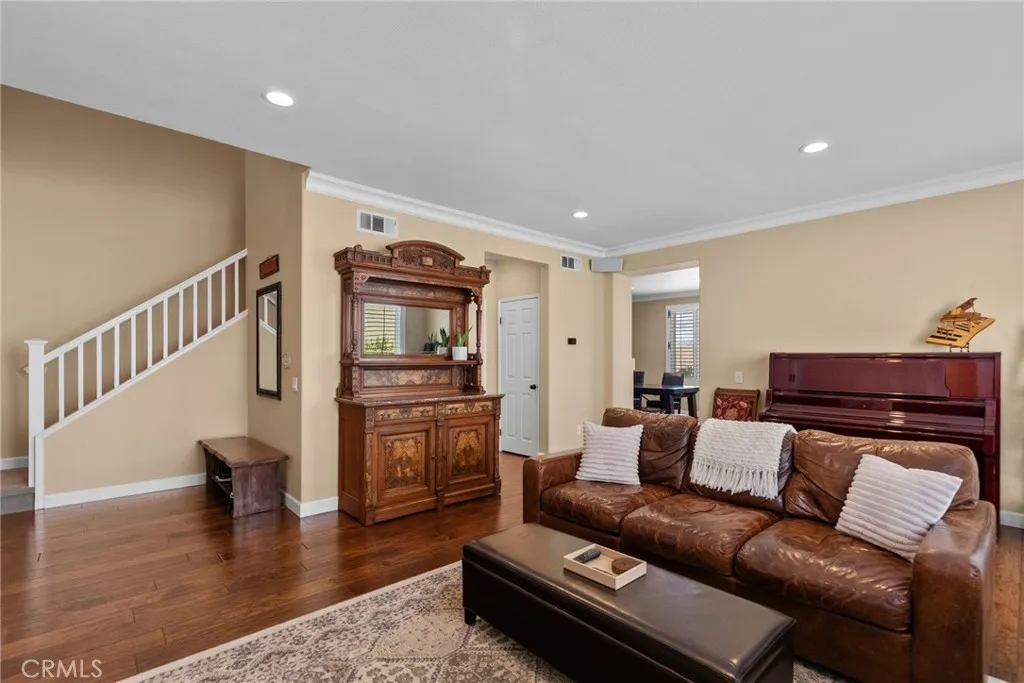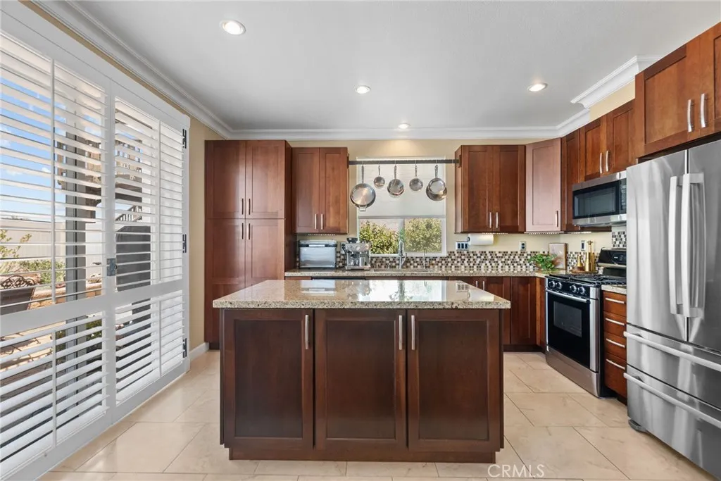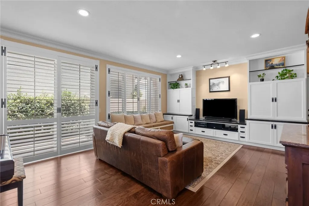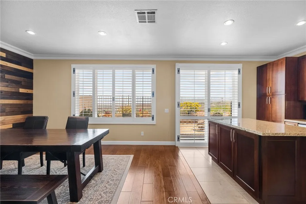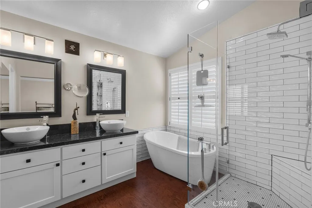Inside you’ll find gorgeous, engineered wood floors, recessed lighting and wooden plantation shutters with hand-forged hardware that add timeless sophistication. The kitchen is a baker’s dream featuring a convection Bosch stove, ultra quiet Bosch dishwasher, upgraded cabinetry with under cabinet lighting and a striking custom island. The living room includes a custom-built entertainment center and a settee with ample storage, making this home as practical as it is beautiful. Retreat to the luxurious primary suite that features a spa-like bath with a Slipper soaking tub, a custom frameless glass shower, granite countertops, and premium faucets and basins. Upstairs also includes a built-in desk space. Additional highlights include a soft water system, drought tolerant front yard and a shop-tiled garage floor with steel cabinets. A two car garage, driveway parking for 2 more cars and on a cul-de-sac. This is a truly move-in ready home that combines custom craftsmanship with modern upgrades and functionality. Don’t miss the opportunity to own this unique home in Santa Clarita. The views are amazing!