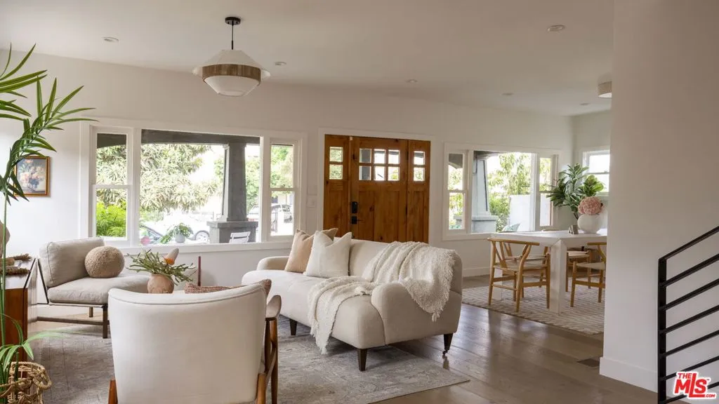 Exceptionally spacious and beautifully remodeled, this historic gem in the Jefferson Park HPOZ neighborhood blends timeless Craftsman charm with modern comfort. Offering 5 bedrooms and a thoughtful floor plan, the home provides abundant space for living, working, and entertaining without sacrificing warmth or character .The exterior showcases authentic Craftsman colors, a wide, welcoming porch, and drought-tolerant native landscaping. A long driveway offers convenient off-street parking. Inside, natural light floods the open, airy layout. The freshly remodeled interior features a neutral palette, perfect for personalizing. The main level boasts an open-concept dining area, family room, and stylish kitchen, plus four bedrooms and three updated bathrooms. Upstairs, you’ll find another expansive bedroom, a large second family room, and two versatile landing areas ideal for a home office, reading nook, or creative studio. Step outside to your private backyard oasis with two spacious decks designed for entertaining and relaxing. Lush, thoughtful greenery enhances the sense of retreat. The detached garage, currently offering two additional parking spaces, holds exciting potential for an ADU conversion .Additional upgrades include paid-off solar panels, updated systems, foundation improvements, and more. Perfectly situated near the local library, parks, and neighborhood favorites like Caf/5, South LA Caf, Harold & Belle’s, and Highly Likely with easy freeway and public transit access.