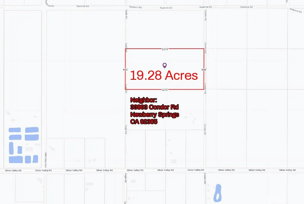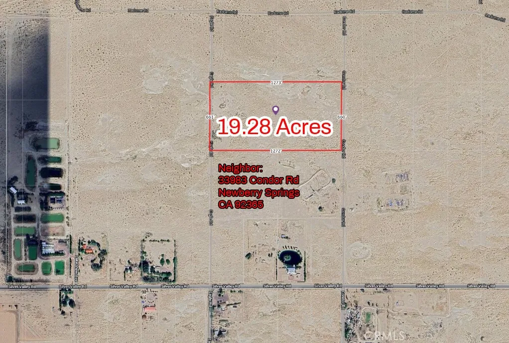 Discover your own slice of the Mojave in this remarkable 19.28-acre (839,836 sq. ft.) property—perfectly positioned near the crossroads of rural tranquility and modern convenience. Located just off Silver Valley Road and Condor Road, this vast parcel offers easy access to Historic Route 66, Interstate 40, and Interstate 15, placing Barstow only 15 minutes away and Las Vegas a scenic two-hour drive.
