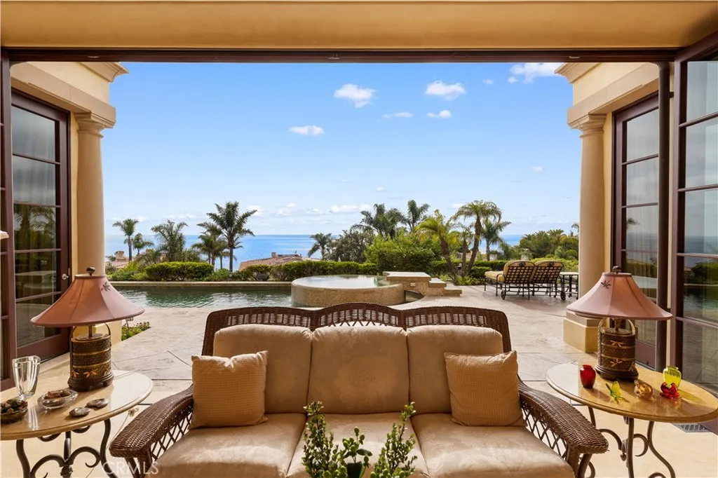 An exclusive stone-paved driveway leads up to a grand, two-story mansion, designed by an award-winning architect. Inside the foyer, a bright skylight and matching wrought-iron railings frame custom-made furnishings, realized by an esteemed local interior designer. Through the ocean-front sunroom (loggia) is a resort-style backyard with a heated pool and jacuzzi, rendering a seamless indoor-outdoor lifestyle. Accented with an al fresco dining pavilion with a state-of-the-art barbecue station, the endearingly decorated landscaped gardens create a true coastal sanctuary that aligns with the glow of sunset beyond the Pacific Ocean horizon.