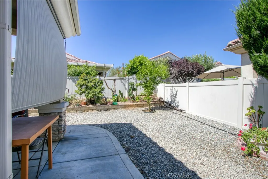 Discover refine living in this sophisticated one story residence in the highly desirable Solera Oak Valley Greens Community. A vibrant 55+ community. The sliding glass door leads to the covered patio and generously lot with several fruit trees that includes a peach tree, guava tree and plums tree, great space to entertain and BBQ. The kitchen opens in to the living space and adjacent is the inside laundry room. Besides the 2 bedrooms the floor plan comes with a den/office space that is perfect for hobby room or an extra room for company to stay. Two car garage and driveway. The club house has resort style amenities including a club house, pool, fitness center. library, billiard room, and pickleball courts. Conveniently located near freeway access, only minutes away to world-class attractions in the palm springs area, casino Morongo and famous Cabazon Outlet stores.
