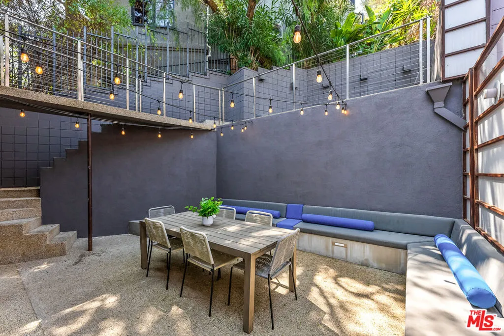 Surrounded by mature trees and tucked among some of the city’s most iconic homes, this sleek tri-level retreat offers a tranquil, sophisticated take on effortless SoCal living. Step inside to custom-cut herringbone floors that lead you up a floating staircase and into a dramatic, light-filled living and dining areas where timeless details meet elevated, designer finishes. Expansive windows frame lush canyon views, anchored by a striking metallic-gray tiled fireplace that adds a touch of glamour. The chef’s kitchen (fully remodeled in 2019) features high-end appliances, including a 30″ Viking gas range, custom cabinetry with walnut veneer fronts and linen weave interiors. A sliding glass door connects to the garden, creating an easy indoor-outdoor flow to a serene alfresco dining area perfect for morning coffee or candlelit evenings. Upstairs, the spacious bedrooms are flooded with natural light and offer ample storage, while the bathrooms and powder room have been tastefully upgraded with Porcelanosa fixtures and stone tile for a spa-like feel. A thoughtfully designed upper yard with a fire pit is ideal for entertaining under the stars. The laundry area, complete with LG washer and dryer, is conveniently tucked into the generous two-car garage. Whether you’re seeking a private canyon escape or planning your next lively gathering, this home delivers the best of the Hollywood Hills lifestyle. Just minutes from world-class dining, shopping, and cultural destinations in both Hollywood and the Valley, this rare offering blends timeless style, flexible living, and enduring value in one of Southern California’s most exclusive enclaves. Come experience what makes this home truly special.