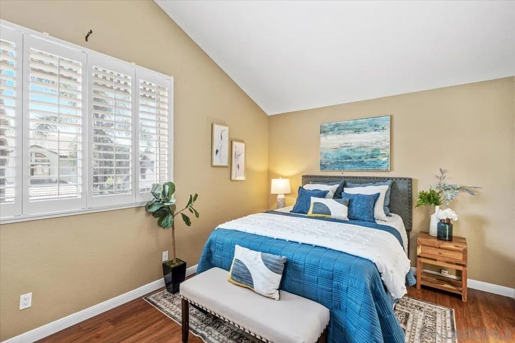 Price reduced, help your buyers take advantage of this awesome opportunity! This beautifully updated townhome offers the perfect blend of privacy, modern comfort, and architectural flair. Located in the highly sought-after University Canyon West community, this hidden gem is just minutes from USD, Fashion Valley, local beaches, and premier shopping and dining destinations. Step inside and be captivated by the home’s award-winning design, featuring vaulted ceilings and angled walls that create a sense of space and light. Skylights and updated dual-pane windows flood the home with sunshine. Enjoy the gas fireplace, plantation shutters and French doors opening to your own private patio and lush backyard, with no neighbors behind, just serene canyon views. The updated kitchen boasts abundant storage and rich wood flooring that flows throughout the home. There is a conveniently located powder room for guests as well as direct access to a 2 car garage with additional storage. The flexible dual-suite layout includes a spacious primary bedroom with a walk-in closet and a stylish en-suite bath featuring a walk-in shower. The second bedroom and full bath offer great space for guests or a home office. An upstairs laundry is conveniently located between the bedrooms for easy accessibility. Outdoor lovers will appreciate the resort-style, community pool and spa, along with direct access to miles of canyon trails for hiking, biking, and exploring. Enjoy the quiet established neighborhood with a true sense of privacy in a beautifully maintained community with a coastal-canyon vibe.