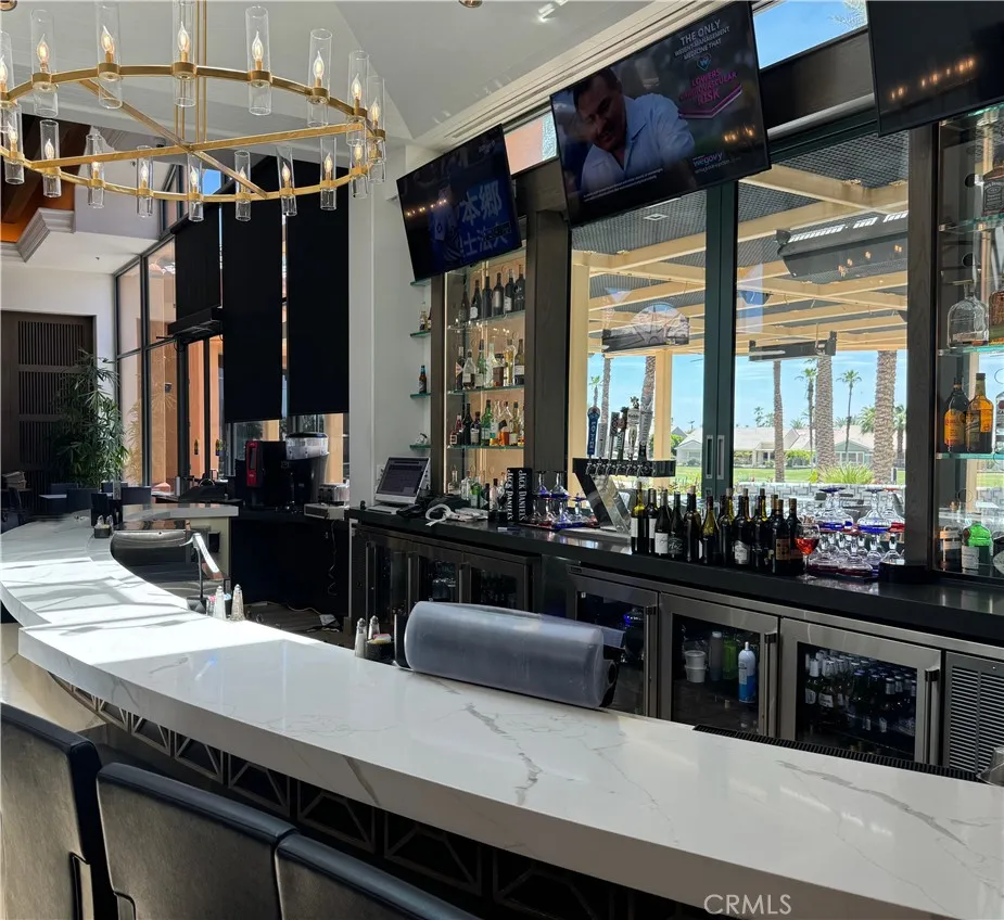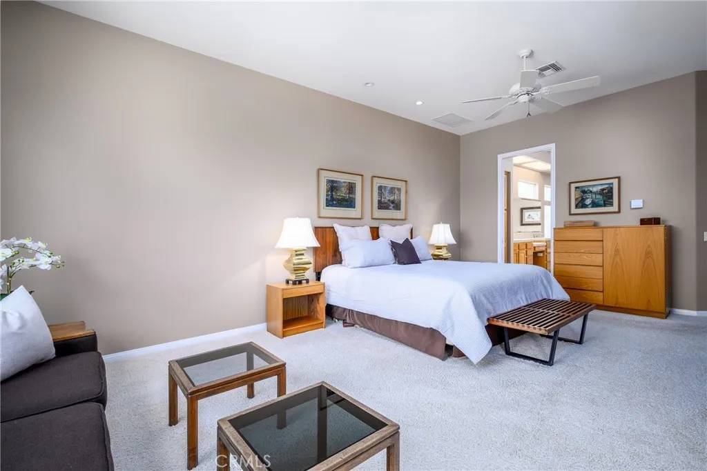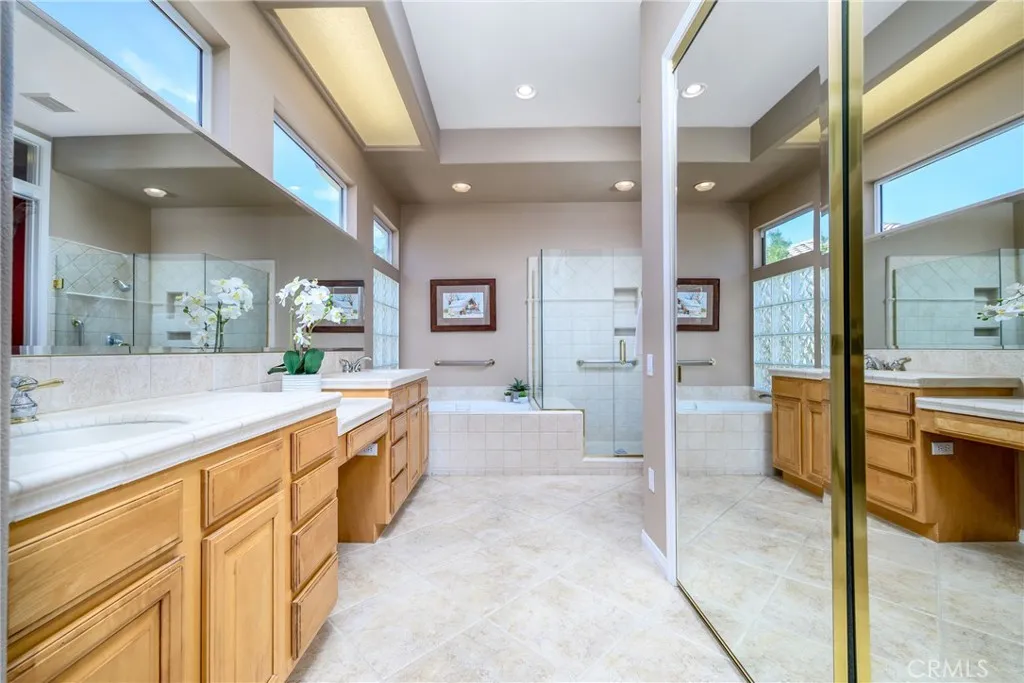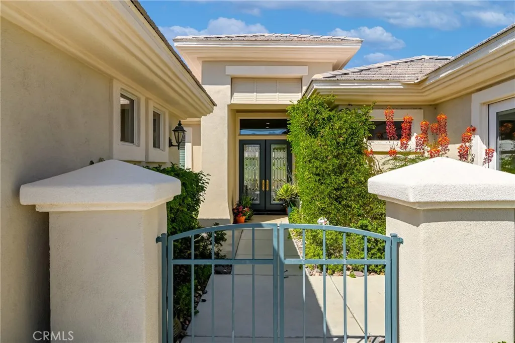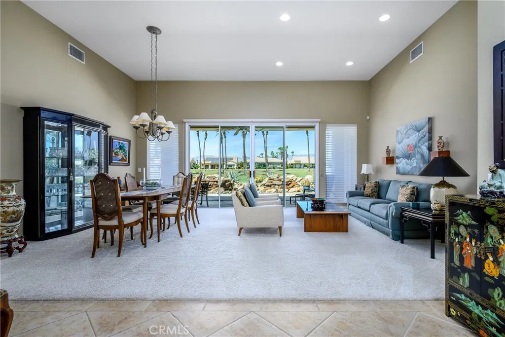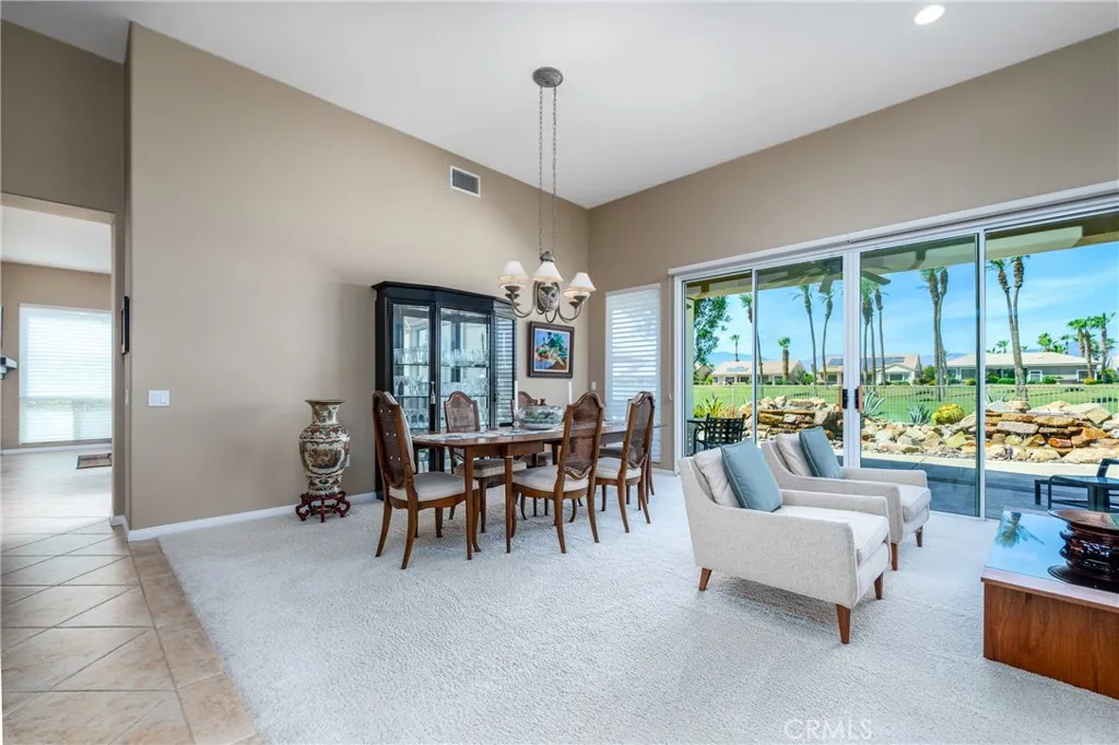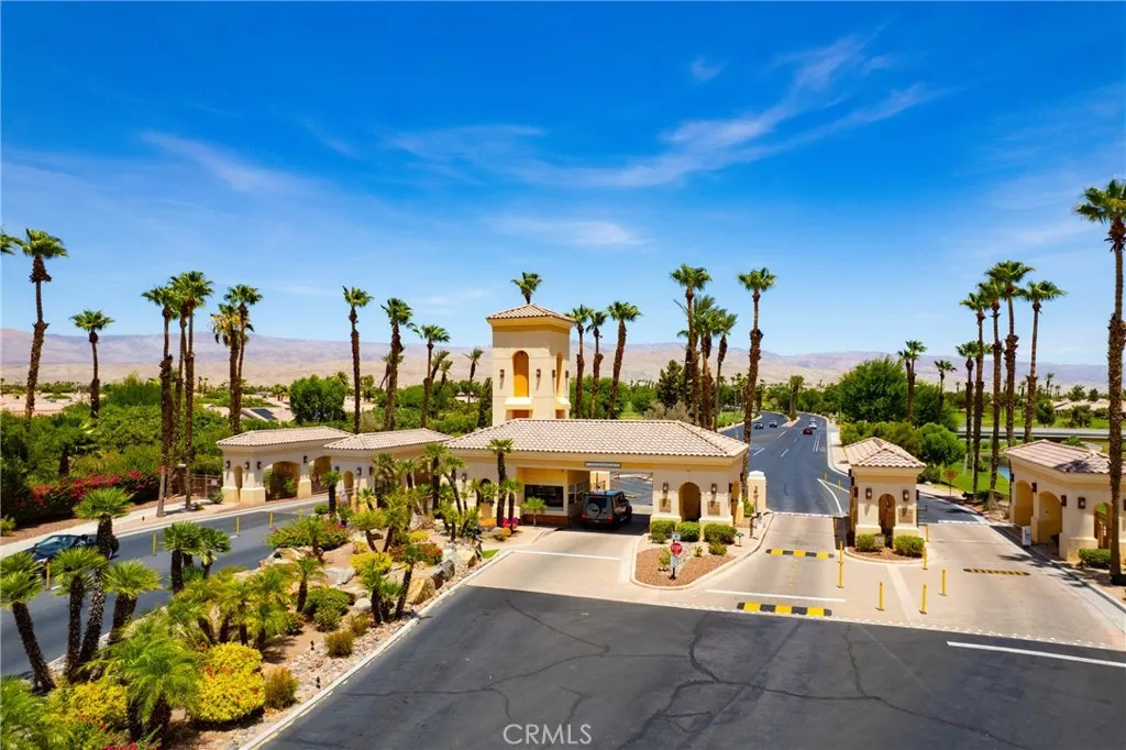 Sun City Palm Desert. Monaco Estate Model with Extended Rooms. If you are looking for AMAZING VIEWS and a GREAT LOCATION, this home is for you! This beautiful home sits on the 7th fairway of the San Gorgonio Golf course with South/South West views of the San Jacinto Mountains. When entering the large, leaded glass, double front doors, the Monaco floor plan opens up to 12 ft ceilings. Be prepared to stop in your tracks looking out through the large windows and glass sliding doors to AMAZING summer sunsets and white snow capped mountains in the winters. The water feature centered in the back patio is also a beautiful focal point that adds soothing sounds and another visual element to the outdoor space. The Primary bedroom was built with the extended package which provides a larger bedroom. The Primary bathroom has double sinks with a built in vanity, soaking tub, walk in shower, and a large walk in closet with mirrored doors. The second bedroom is also extended in size, has mirrored closet doors, french doors that open to the front court yard and fountain. The en-suite bathroom features a shower and bathtub. The third bedroom, which can also be used as an office, is attached to a guest bathroom with walk in shower. The kitchen has granite countertops, up-graded wood cabinets with pullout shelving for easy access, pantry, a large island and ample storage . There is a skylight that provides natural lighting. The open floor plan in the kitchen area has a cozy family room with a fireplace and breakfast nook that looks out to the beautiful views. The large laundry room comes with washer/dryer and has several cabinets, great for storage. The 2 car garage has walls with storage racks and is also extended in size. There is a 3rd attached garage for golf cart parking. New air conditioning units were installed in 2020. Enjoy all that Sun City has to offer: Two 18 Hole Championship Golf Courses, 18 hole Putting Course, three Club Houses, Tennis, Indoor and Outdoor pools, Bocce Ball, Pickelball, Softball field, two Restaurants, Fitness Center, Billards, over 80 social clubs and much more. Enjoy the nearby PNB Paribas Open Tennis Tournament, the new Acrisure Arena, great shopping and dining.