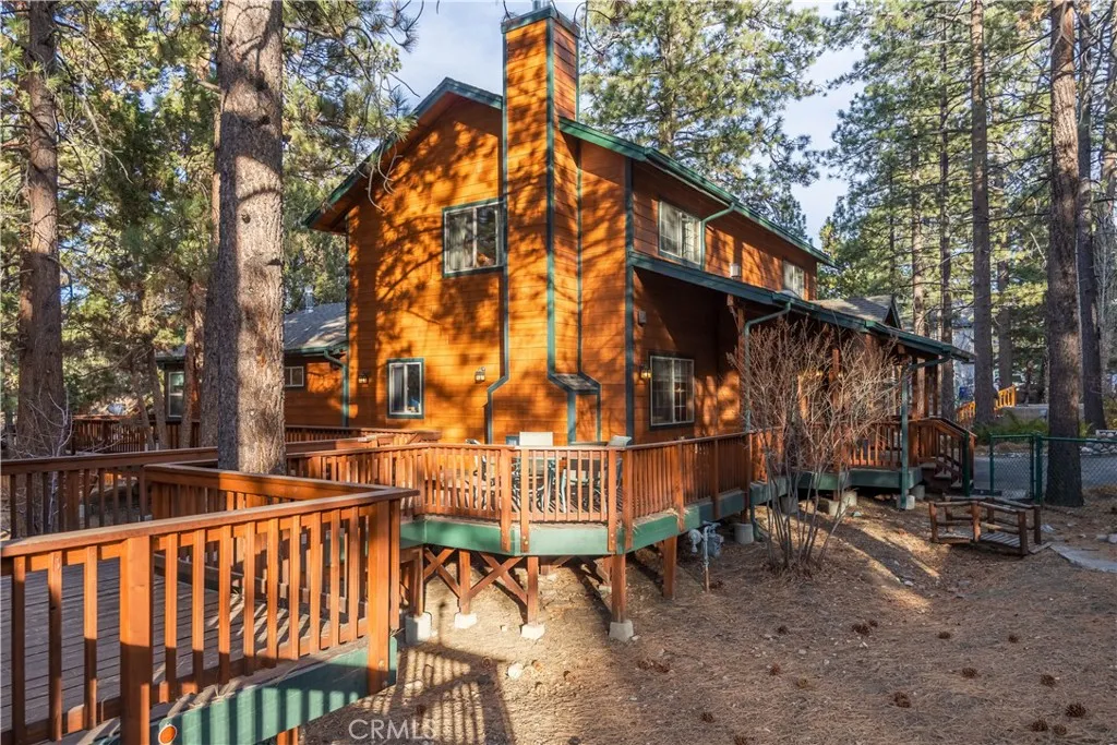 Discover this rare gem in Big Bear! A stunning 2,900 SF custom cabin with guest house situated among beautiful mature pines on a vast 10,000 SF lot. Boasting five spacious bedrooms plus an office that doubles as a sixth bedroom. This meticulously planned retreat offers an open-concept family great room, a gourmet kitchen with granite countertops, a game room with a pool table, and a cozy den with a fireplace. Enjoy two master suites with fireplaces too – one on the main level and another upstairs – each designed for comfort and privacy. There is plenty of storage including spacious walk-in closets & a kitchen pantry. Wired for 7.2 surround sound, the home also features hot water recirculation, interior laundry, low-maintenance Hardie board siding & ample parking. The owners thoughtfully planned & executed the additions & renovations so you could just relax and enjoy! The exterior setting features expansive redwood decking and exterior speakers that set the ambiance for unforgettable gatherings. Play some horseshoes while the kids play on the swing set and explore the spacious grounds. Multiple entertaining areas, both indoors and out, ensure there’s ample space for everyone to appreciate. A charming guest quarter sits above the single-car garage, adding versatility to the property. With beautiful pine surroundings, thoughtful design, and hard-to-find amenities, this Big Bear haven is the perfect place to roam, relax, and entertain. Get this one on your must-see list!