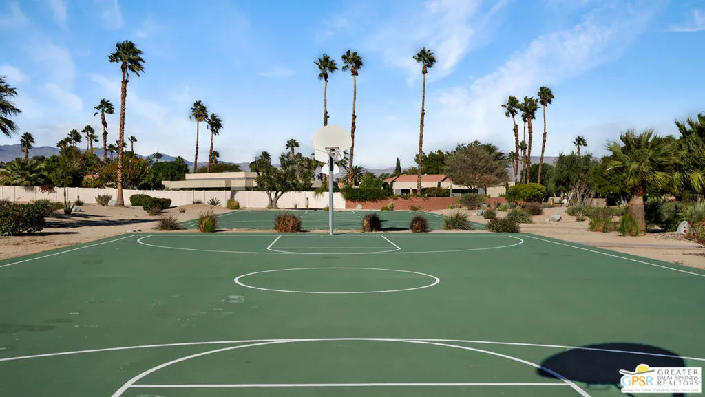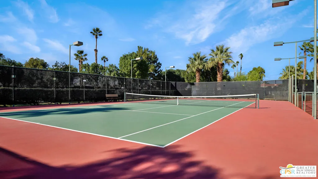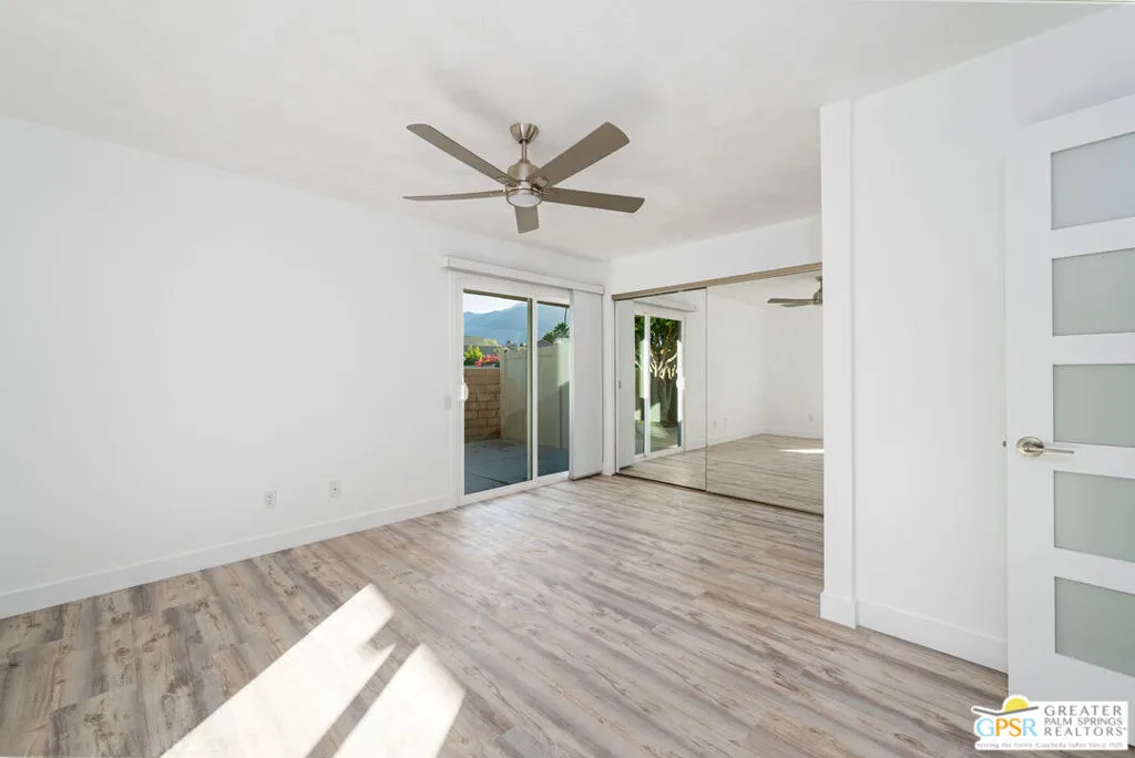 CONDO + PRIVATE YARD + GARAGE for Long-term lease. Be the first to live in this newly renovated one bedroom and one bathroom condo with a private yard and private attached garage is a true Palm Springs gem. Just minutes from downtown Palm Springs, this community is a PERFECT place to be. Completely renovated, this condo balances modern style with the beauty of the California desert. Utilizing the desert color palette, the high quality features are underscored by the ubiquitous flooring throughout and framed by the white walls and ceiling in this OPEN FLOOR PLAN home. In the kitchen, large aggregate quartz counters compliment the spacious wall-length cabinetry, tile backsplash and built-in appliances. The bedroom includes a newly renovated bathroom with matching blue tiles and modern fixtures. Advance outdoors via the sliding doors in the living room or master bedroom to a wrap-around back/side yard with drought-tolerant landscaping and beautiful shade tree in the corner. The yard is perfect for entertaining or enjoying time with your furry best friend. An interior laundry room includes a stacked washer/dryer. The attached one-car garage includes a tankless water heater. The pool and spa are a few homes away. The community includes gated access, eight (8) pools/spas, tennis/pickle ball and basketball courts, and a large central park private for only community residents. Pets ok. Water, trash and landscaping included in rent.