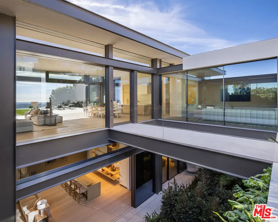 Indulge all of your senses in this brand-new Contemporary marvel located in the prestigious Bird Streets. Showcasing supreme quality with the finest materials, this estate embodies luxurious Los Angeles living and is the ultimate view estate with unobstructed jetliner vistas from Century City to the Pacific Ocean. A masterful creation by Paul McClean architecture, built by Dugally Oberfeld, and interior design and finishes by Marmol Radziner, this home features every conceivable amenity. Spanning approx. 13,400 sq.ft. of living space with 7 bedrooms and 9 bathrooms, there is ample space for friends, family, staff, and entertaining. Offering privacy and security, a gated driveway leads to a subterranean 8-car garage and the gated front entryway leads to the glass front door across a bridge spanning above the lower level interior courtyard oasis. Equipped with state-of-the-art smart home technology and custom automated walls of glass that amplify the incredible views throughout. The main level offers a grand living room with fireplace, dining area, expansive kitchen with enormous island and Wolf and Subzero appliances, family room, powder room, two guest bedroom suites with one furnished as an office, and the beautiful primary bedroom suite with walls of glass and terrace overlooking the views, fireplace, dual walk-in custom closets, and Afyon White Slab marble bathroom. The living room and primary bedroom flow into the exterior space featuring lounging terraces, fireplace, synthetic turf, and zero-edged pool and spa. Descend the floating staircase or take the elevator to the lower level which offers an incredible entertainer’s oasis and wellness retreat. Features include a living room with large built-in bar, game/billiard room, glass wine display, gorgeous theater/media room, huge gym with walls of glass to covered patio, and spa with massage room, large shower and sauna. There is also a remarkable interior courtyard Zen-garden with water wall and the most beautiful living wall that brings light and nature inside. The lower level is complete with a guest suite, powder room, laundry room, and two staff suites. Discover this ultimate hillside oasis just moments from the excitement of Sunset Blvd and the best of Los Angeles dining, shopping, entertainment, and nightlife.