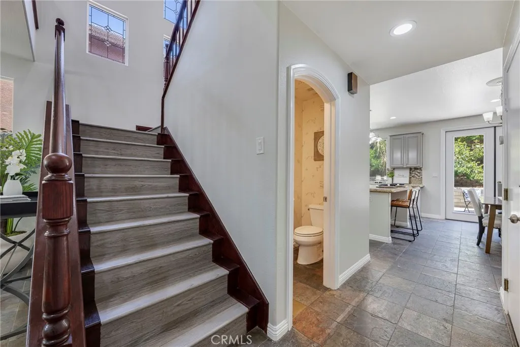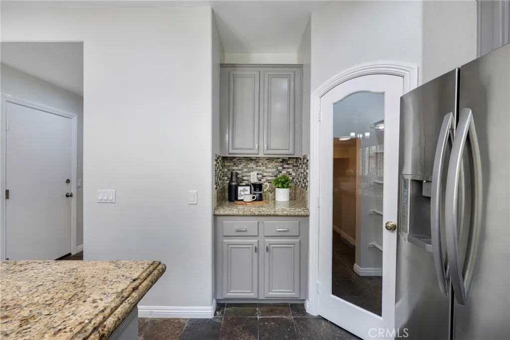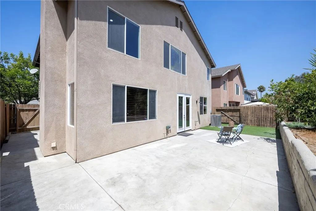 Off the family room, step outside through french doors to enjoy a private backyard with low-maintenance artificial turf, perfect for relaxing or entertaining.