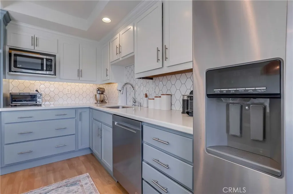 Perched atop a peaceful hillside in Redondo Beach, this elegantly renovated townhome combines modern luxury with everyday comfort. Expansive views, soaring ceilings, and an abundance of natural light create a refined yet inviting atmosphere. The living room showcases a dramatic fireplace, vaulted ceilings, recessed lighting, and architectural beams, while the sleek chef’s kitchen offers stainless steel appliances, premium fixtures, and contemporary finishes. A generous west-facing balcony brings ocean breezes and extends the living space outdoors—perfect for entertaining or enjoying sunset views. The stunning primary suite is perfect for the fashion minded, with a built-in wardrobe and designer closet. Blending convenience and style, the home features a private two-car garage with direct access, in-unit washer and dryer (new in 2024), custom closets, 220V car charger hookup, and other thoughtful upgrades. The community is beautifully maintained and includes resort-style pool for year-round enjoyment. Situated within the highly acclaimed Redondo Beach school district, this residence offers the perfect balance of turnkey luxury living and family-friendly functionality in one of the South Bay’s most desirable locations. Make it yours today.