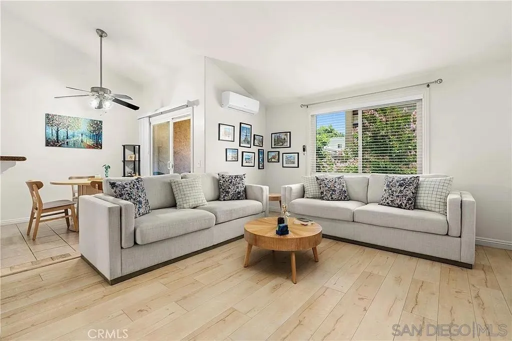 Welcome, beautifully upgraded top-floor end-unit condo in San Diego’s College East neighborhood. This bright and spacious 2-bedroom, 2-bath home is located within a secure gated community that offers key card entry and convenient access to nearby biking and hiking trails, Lake Murray, local parks, and tree-lined sidewalks. Inside, the open layout features vaulted ceilings, sleek laminate flooring, and recessed lighting throughout. The kitchen is thoughtfully updated with granite countertops, stainless steel appliances, a breakfast bar, and a separate formal dining room. The living area opens to a private balcony, while both bedrooms are on the main level, including a comfortable primary suite with its own full bath. Additional highlights include mirrored closet doors, ceiling fans, in-unit laundry, and one assigned covered carport space. With no one above and only two shared walls, this end-unit home offers privacy and comfort just minutes from SDSU, Lake Murray, shopping, dining, and the 70th Street trolley. Please note: no smoking, no Airbnb or other short-term rentals. Pets allowed with restrictions.