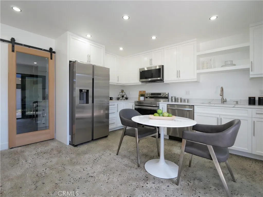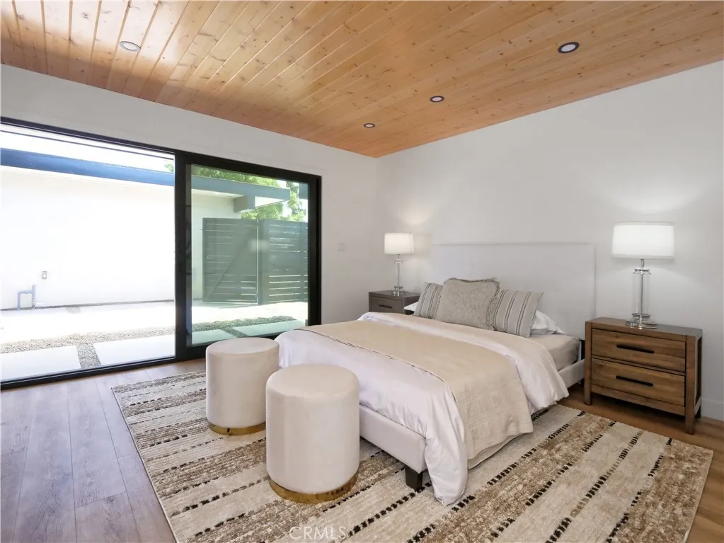 The appliances are top of the line, including a Forno refrigerator, a six-burner gas stove, and a Bosch dishwasher. The main home has a master bedroom and an additional room that can be used as a bedroom or office. There is an abundance