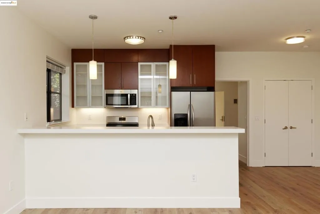 Chic 2-level Condo in Oakland’s West Clawson Neighborhood at the Emeryville border. Walkscore 86. Bikescore 95! This stylish residence was built in 2006 & is like new. Expansive industrial-style windows. Fireplace (non wood burning) in living room. Lovely exclusive-use patio at rear. Wood grained style laminate floors on both levels. 3 bedrooms (1 on lower level, 2 on upper level). Each bedroom has an ensuite bathroom. Primary upper level bedroom has abundant closet space, including a walk-in closet. Gorgeous kitchen w/cherry & glass cabinetry, designer lighting, & breakfast bar. Stainless steel kitchen appliances; gas stove. Bathrooms feature Kohler fixtures. Energy efficient hydronic heating system. Track lighting throughout. Full-sized, in-unit side-by-side washer & dryer. Common area roof deck. One (1) gated off-street parking space located directly in front of the unit. Located in the Dogtown Art District at the Oakland-Emeryville border. Downtown Oakland, Emeryville’s Bay Street, and Berkeley shopping & dining nearby. Commute to SF via BART + convenient HWY access.
