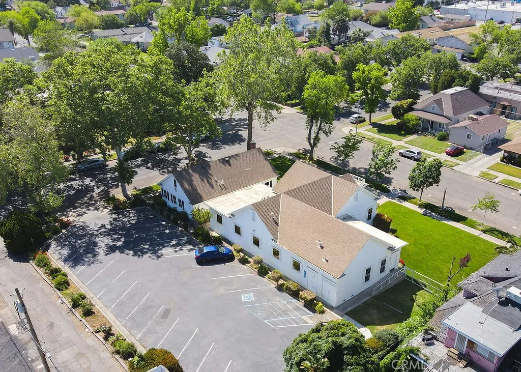 The main building at 411 W 20th offers approx. 3,200 SF of fully functional medical space with 7 exam rooms, 2 private offices, a filing room, 3 restrooms, and a handicap-accessible ramp. Originally built in 1986, the building retains historic charm with portions believed to be from one of Merced’s earliest homes.