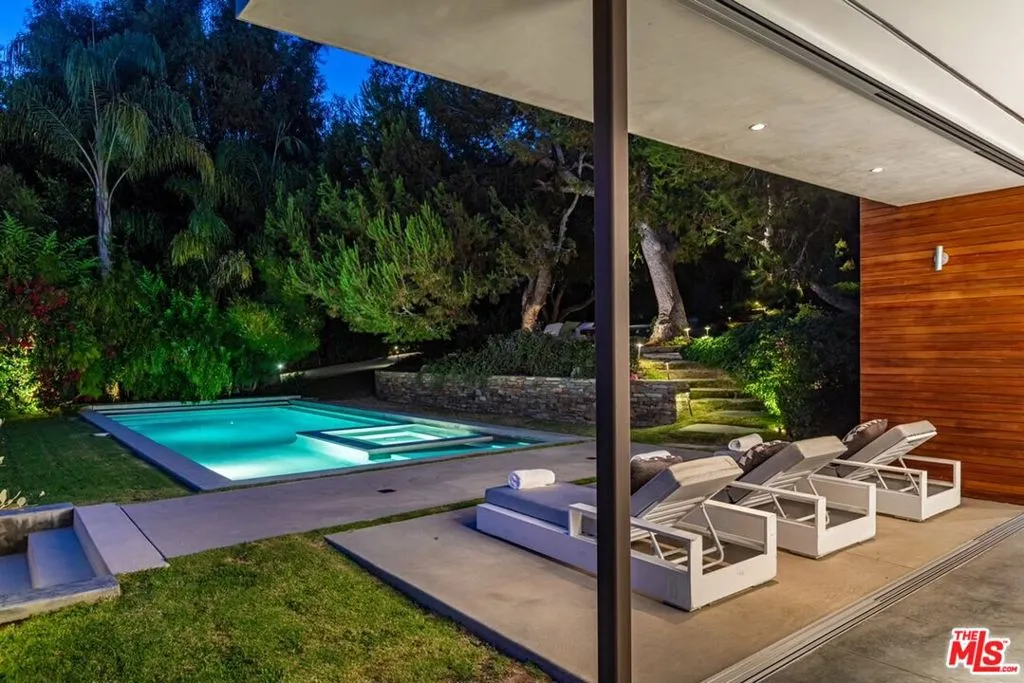 Mid-century modern elegance blends perfectly with 21st-century energy efficiency in this sleek, open, garden estate atop Encinal Bluffs. Exceptionally private, the approximately 1.89-acre blufftop property features majestic views of ocean and islands with resort-style amenities, including a detached guest house, sports court, solar-heated pool/spa, direct beach access, and guest parking for 20 cars. In 2009, W3 Architects stripped the original house to the foundation, reimagining and expanding the estate for sustainability and far-reaching vistas. Vanishing walls of glass open the spacious interior to gorgeous sight lines and beautiful decks, terraces, patios, pool, and gardens for refined indoor-outdoor relaxation and entertaining. Abundant natural light emphasizes the beauty of interior finishes, including stunning woodwork and cabinetry throughout. Pavilion-style living, dining, and kitchen spaces provide a harmonious setting for intimate gatherings and grand-scale entertaining. At the top of the beautiful wood staircase is a jewel-box surprise: a glass-walled loft for naps, yoga, and dreaming. The home’s four en-suite bedrooms include a sublime primary retreat complete with a sitting area, an office with built-in desk and cabinets, a spa-style skylight bath, and pocket doors that open onto a large ocean-view deck. At the front of the house is a large garden, a tennis court set among statuesque trees and plantings, the pool, Jacuzzi, and spacious pool deck with a covered dining area, and the one-bedroom, one-bath guest house with a full kitchen. There is also an outdoor kitchen with a stone pizza oven and built-in dining area. In addition to an array of smart-home features, the estate is equipped with a photovoltaic array that supplies all the home’s power needs, an active solar thermal water heating system for hot water and in-floor heating, plus an energy-conserving 3,000-square-foot planted living roof. A truly exceptional blufftop compound for a lifestyle of gracious contemporary comfort. Also available for lease at $50,000 per month.