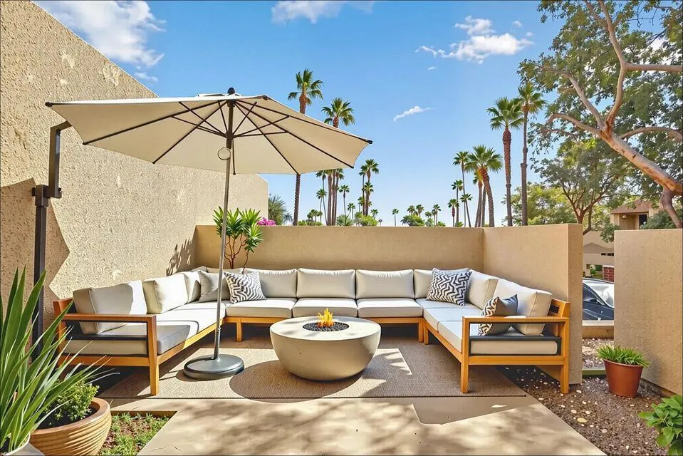 Spacious 2BR Condo + 3 Private Patios in Camino Del Sol – Lush Landscaping + Resort Amenities Located in the beautifully maintained Camino Del Sol community, known for its quiet atmosphere, lush desert landscaping, and resort-style amenities (2 pools and spas, 2 tennis courts, and a clubhouse). This is one of the largest 2BR/2B in the complex, featuring 3 large private outdoor patio areas– perfect for gardening, quiet mornings, and additional areas for entertaining. It is a uniquely elevated ground-floor unit (accessible by a short flight of stairs), offering the ease of single level living and a ‘tucked-away’ feel with the privacy and peace of an upper level unit. It is located conveniently next to the parking area, making trips to and from the car seamless, and just minutes from downtown Palm Springs, making this home perfect for long-term tenants seeking comfort, convenience, and an easy lifestyle.