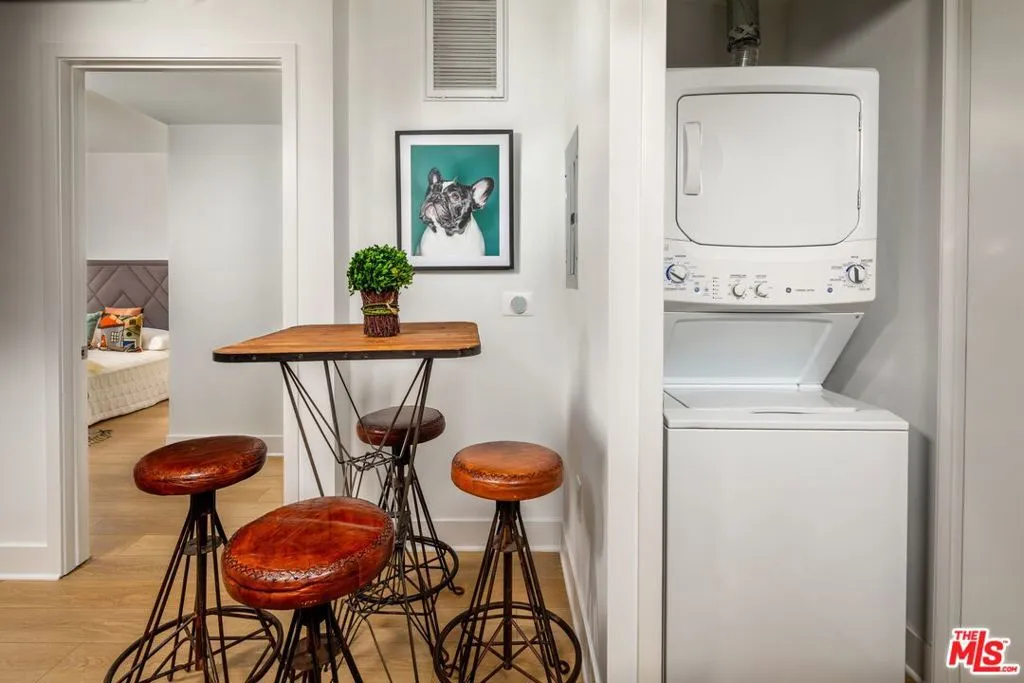 Experience refined city living in the heart of Hollywood with modern 0BE/1BA residence is available immediately! Featuring GE stainless steel appliances, full-size washer and dryer, vinyl wood flooring, lofty 910 ft ceiling, Caesar stone countertop, European cabinetry, tile backsplash, Carrera marble shower, and deep soaking tub. Enjoy spacious wardrobe, air conditioning, and custom window covering that combine elegance with function.Community amenities include a rooftop deck with Hollywood view, pool and lounge area, BBQ and dining space, a 24-hour fitness center with TRX, and a theater screening room for entertainment. Additional conveniences include package lockers, bike storage, lobby lounge, keyless access, and on-site retail. Enjoy easy access to dining, shopping, and iconic entertainment, surrounded by the charm of Larchmont and the energy of Hollywood. Photos may include similar model units and virtually staged renderings.