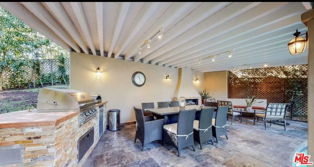 Tucked away on a quiet Brentwood street, this private three-story French Normandy residence blends timeless charm with thoughtful modern amenities; offering 6 Bedrooms, 6 bathrooms with 5,634 of living space on a spacious 16,412 square foot lot. Surrounded by mature oak and melaleuca trees, the home offers a rare sense of privacy while remaining minutes from the Brentwood Country Mart, Palisades Village, and easy freeway access. Through stately French doors, a dramatic foyer welcomes you into an interior of warmth and sophistication. The main level unfolds with a sun-filled formal living room anchored by a fireplace, an expansive formal dining room with versatile French door enclosures, and an inviting family room seamlessly connected to the kitchen. Designed with entertaining in mind, the chef’s kitchen features stainless steel appliances, two built-in refrigerators, a wine cooler, and an oversized island with abundant counter space. A breakfast nook wrapped in windows and French doors bathes the space in natural light and opens directly to the patio. Upstairs, the luxurious primary suite boasts soaring cathedral ceilings, oversized windows, and a spa-inspired bath finished in quartz with gold accents. A soaking tub, walk-in shower, dual vanities, and private balcony overlooking the yard create a true retreat, complemented by a massive custom walk-in closet. Three additional spacious bedrooms and two full baths complete the upper level. The first floor offers flexibility with two additional bedrooms, a full and half bath, and a dedicated laundry room ideal for guests, staff, or home office needs. The backyard is an entertainer’s dream, with multiple French doors leading to a generous patio with fireplace, while beyond lies a private pool and spa framed by lush landscaping. A built-in pergola houses a grill, second outdoor fireplace, and dining terrace, creating the perfect setting for alfresco living year-round. A rare opportunity to own a classic estate in one of the Westside’s most desirable neighborhoods, this Brentwood home offers privacy, elegance, and exceptional livability. For Sale $8,450,000 For Lease $42,000 per month, furnished.