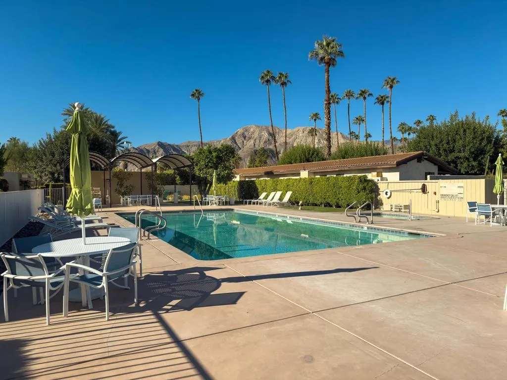 Price Improvement to be the deal of the mid century!!!! This stunning, light filled condo available at the highly desirable Tamarisk Gardens is waiting for you! 1 of only 28 condominium homes, built in 1966 and designed by architects McCarthy and Hartfelder, it is located adjacent to and steps away from the Tamarisk Country Club. The open, light filled floor plan consists of a large living room with a 2-way gas fireplace, and formal dining area which opens to a private patio. The updated chef’s kitchen includes top-of-the-line Wolf, SubZero and Bosch appliances. There is an informal dining area off the kitchen as well as a breakfast bar to allow for plenty of entertaining. There are two main suites, each with a generous walk-in closet, plus a large den/office. Each of the two baths have been updated. The home opens onto private, south facing patio with mountain views and has loveling evening lighting. The home also offers plenty of upgraded interior lighting and ceiling fixtures to create the perfect mood for evening entertainment. There is also leased solar with favorable rates, and electric window coverings. Assigned carport and an additional dedicated parking space is included. The grounds are impeccably maintained, with a community pool and spa which are steps from this home. Some of the furniture could available outside of escrow. Buyers and their agents are to conduct thorough investigates regarding the property and verify any information regarding this property.