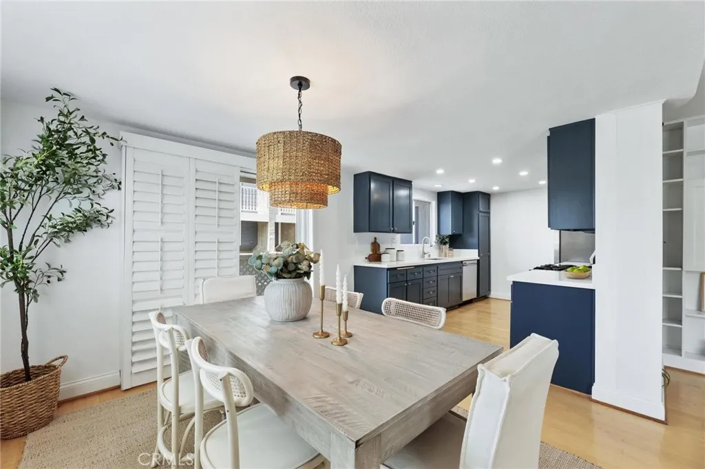 Welcome to 1421 12th Street, Unit 1, a bright and airy front townhome in a quaint Cape-Cod style building. Flooded with natural light, this home features an open floor plan where the kitchen, dining, and living spaces connect seamlessly. Off the dining area, sliding glass doors open to a spacious terrace, perfect for outdoor dining or lounging. The updated kitchen showcases stainless steel appliances, new stone countertops, refaced cabinetry, and fresh paint. Additional highlights on the main level include hardwood floors throughout, a brick fireplace, and a convenient powder room. Upstairs, two bedrooms each enjoy their own ensuite bath and large closets, creating a versatile dual-primary layout. One bedroom also features a private terrace with room for seating and lounging. The lower level provides direct access to a two-car garage with ample storage. This special property (one of only five units) is a quiet escape, located just one block from Meadows Elementary, Polliwog Park, and Manhattan Beach Middle School. Manhattan Beach Preschool is also just around the corner. With easy access to downtown shops and dining, plus LAX and major freeways just minutes away, this location is ideal for both convenience and lifestyle.