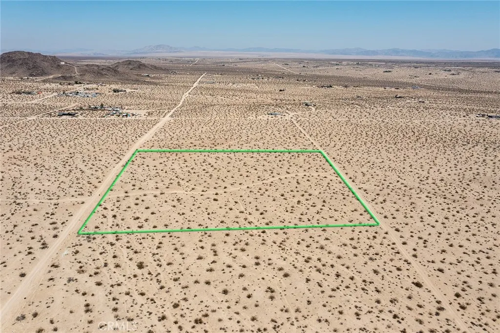 10-ACRES: Surrounded by wilderness. Forever views. Mountains of Joshua Tree National Park to the south. Located on a mesa above the ancient dry lake bed below. NOTE: Green lines demarcating boundaries in pictures are approximate. APN: 0606-321-10