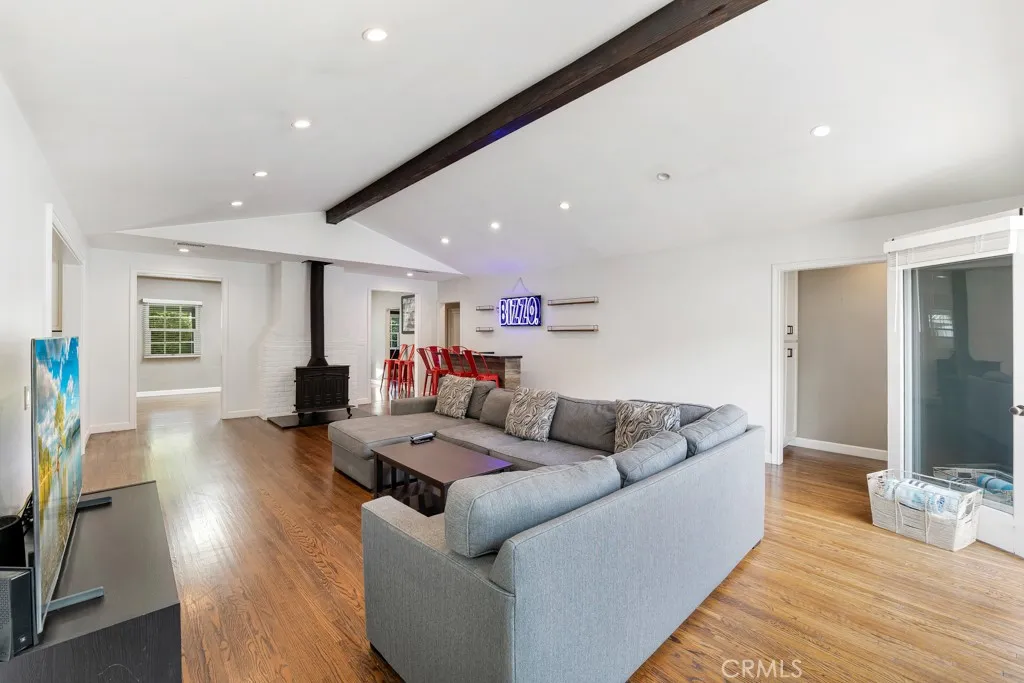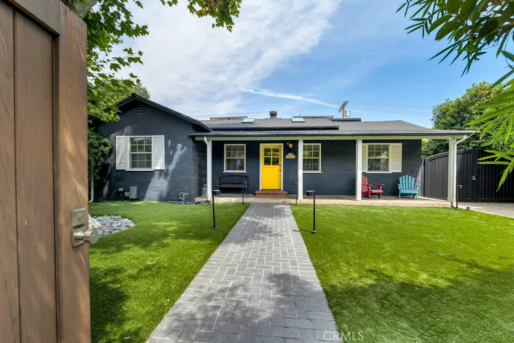 This beautifully transformed and expanded home features 4 bedrooms and 3 bathrooms, making it a true gem! The primary residence includes 3 bedrooms and 2 bathrooms, while the accessory dwelling unit (ADU) offers a cozy studio layout with 1 Bathroom. The Main House consists of its soaring vaulted ceilings and open, airy layout, this residence showcases top-notch finishes and exceptional indoor/outdoor living. A charming Dutch door welcomes you into the cozy formal living room, featuring a sophisticated stone fireplace as its centerpiece. The seamless flow of the open-concept design leads you effortlessly into the dining area, which is beautifully highlighted by a striking architectural light fixture.