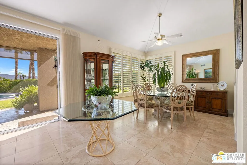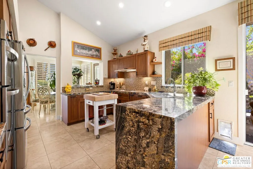 VIEWS. VIEWS. VIEWS. PRIVACY! ~ Gated Mirage Cove, Coveted and secluded ~ where privacy abounds. Only 69 homes terraced on the hillside with 360-degree mountain views and city lights. This home offers three bedrooms, including two ensuite primary suites, three recently upgraded baths (Two En~Suite and 1 bath with walk-in shower. Approximately 2,750 square feet (per assessor). Private driveway to attached oversized two-car two garage Plus with two additional parking spaces. Gated, free on-site RV parking lot ~ Leaded glass double-door entry. Neutral ceramic tile flooring. Bathrooms with travertine flooring. Ensuite bedrooms feature newer carpet. All NEWER energy-efficient windows and glass doors recently replaced. The spacious kitchen has granite counters, custom cabinetry, and newer stainless appliances. Large living room with adjoining semi-formal dining area. Separate Family/Media room. Oversized .40-acre site with saline swimming pool and spa. Property has been updated over the last 1.5 years, addressing nearly all surfaces including quartz counters, cabinetry, windows, sliding doors with screens, HVAC and attic ducting, and roof servicing. Some furnishings available. Mirage Cove community offers an almost Olympic-size pool, spa, tennis courts, and pickleball courts. This gated hillside neighborhood consists of just 69 homes ranging from 2,200 to over 3,000 square feet on terraced, pool-size lots with mountain views. Homes are typically priced from $1,100,000 to $2,100,000.