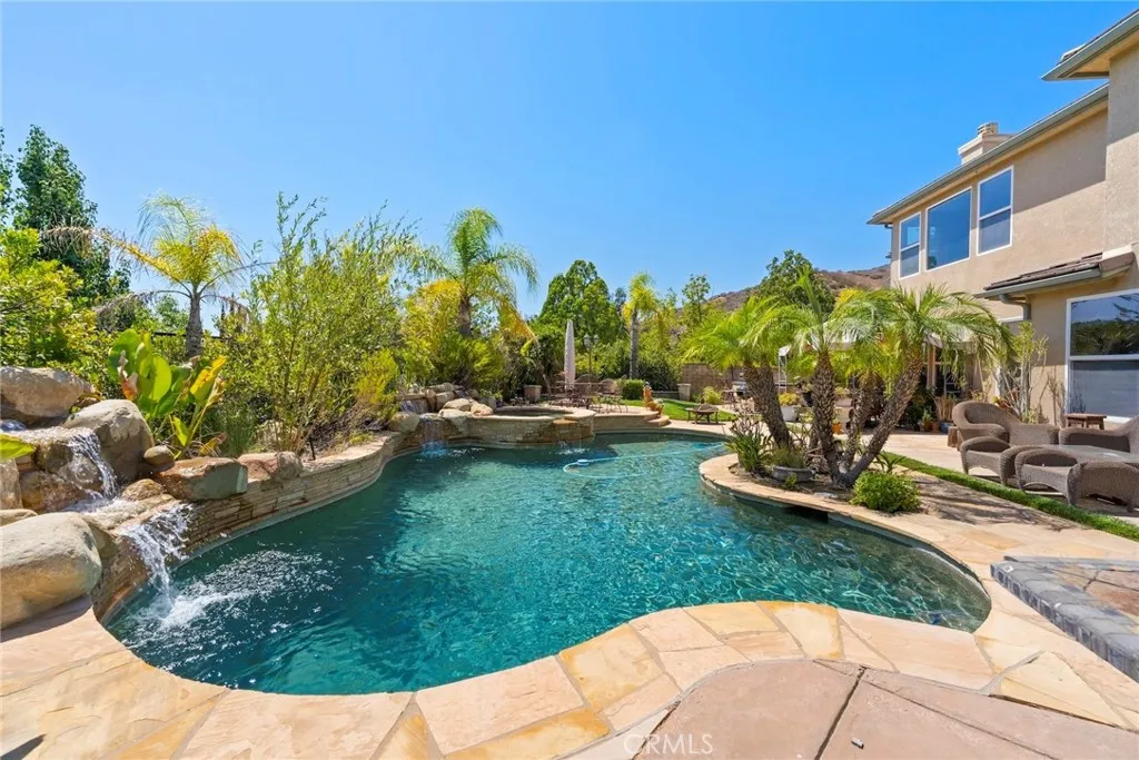 This gorgeous home in Tesoro Del Valle is priced to sell! Featuring rich brown hardwood floors, open concept kitchen with newer granite countertops, stainless steel appliances, and impressive pantry space. The grand master bedroom features a sitting room, stunning city views and luxurious and large master bath with walk in closet. Also upstairs is a bonus family room with access to 2 bedrooms. The wrought iron staircase compliments the luxe finishes in this spacious and remarkable property. Continue to take advantage of the view with a private pool, spa and waterfall in the backyard complete with built in BBQ. The HOA features access to a clubhouse/banquet facility, pools, spas, tennis courts, baseball ground, gym and a beautiful lake. Quite a gem in the highly desirable Tesoro Community!