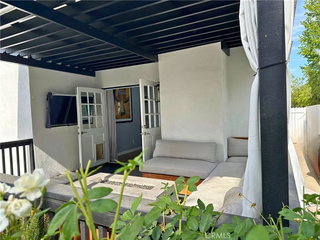 Pristine 3-bed/2-bath traditional home that has been loved & cared for. A light-filled, spacious living room with hardwood floors is open to a fully equipped gourmet kitchen with a stunning center island, stainless steel appliances, and immaculate cabinetry. The formal dining area with a custom tufted banquette, vaulted ceiling, and fireplace creates a cozy ambiance that is sure to impress family and friends. Astonishing primary suite with vaulted ceilings, a personal wood-burning fireplace, a walk-in closet, a bath with a soaking tub, and a separate shower. French doors open to a tranquil, recently re-landscaped backyard featuring a unique handmade outdoor seating area, a fire pit, a newly built covered patio, an outdoor television and entertainment area, and outdoor string lighting that can be controlled remotely via phone & Google/Amazon systems. The home features a smart thermostat, light switches in central living areas that are compatible with Google/Amazon systems, and new exterior landscape lighting in both the front and back yards, which includes remote/phone-controlled access and a timer system. Brand New electrical panels were installed in the residence and in the garage in the last year (with the ability to add solar). A new air conditioning condenser was installed in 2023. The exterior of the property has been newly painted, custom fencing has been installed, access for garbage storage and removal has been added (so your guests will not see it), and the garage has completely redone siding/stucco exterior. Complete perimeter security system with Nest Doorbell and a new irrigation system in both front and back yards, complete with mature drought-tolerant/low-maintenance landscaping lining the front parkways and back yard perimeter. Mature orange and lime trees line the side of the property for added privacy and shade. Be sure to check out the thoughtfully designed two-car garage, which features numerous built-ins, a custom workbench and countertop area, and a new cement floor that could be converted into a large ADU if the new owner wishes. A newly installed garage door has phone control and WiFi access for remote accessibility. Easy access to shops, restaurants, studios, hiking trails, freeways & the Westside. All rooms of the house have custom blackout window coverings for privacy and temperature control, along with a custom dog door for pet access.