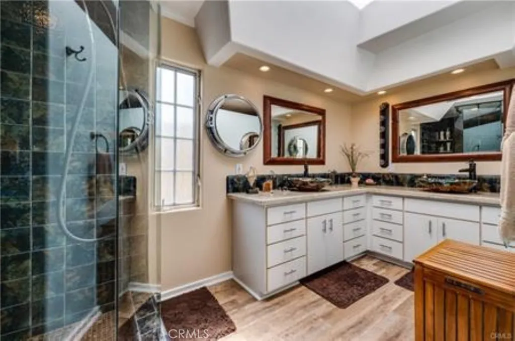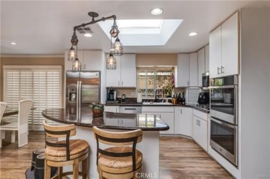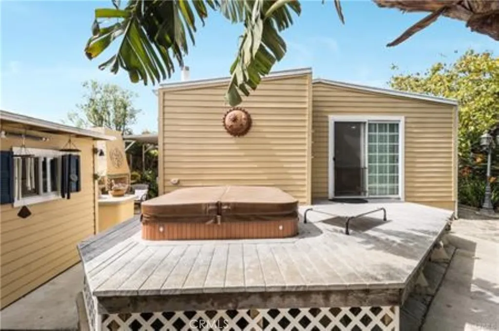 Welcome to a stunning, completely remodeled 2-bedroom, 2-bath open-concept home on the highly desired bluff of Paradise Cove in Malibu. This model was designed for an optional 3rd bedroom. This beautifully landscaped property features a modern 2-year-old aluminum roof with solar panels, an updated electrical panel with a designated exterior plug for a generator, and copper plumbing and electrical wiring throughout. The gourmet kitchen boasts new stainless steel appliances, including a double oven and 5-burner cooktop, granite countertops, custom cabinets, and a spacious granite-topped island with ample storage. A large skylight and custom lighting enhance the bright and inviting atmosphere. The dining area, adorned with a custom chandelier and China cabinet, opens to an expansive Trex deck via a sliding door. The family room, designed for entertaining, features two skylights and a double ceiling fan, while the large living room showcases an ocean-themed frieze at ceiling framed with marine rope, a corner travertine-faced gas fireplace, and art alcoves. The updated guest bath includes wainscoting, an enclosed shower over the tub, and ample storage. The open and bright primary bedroom has sliding doors leading to a back Trex deck and deck-level spa. The primary bath features a large walk-in shower with designer tile, a quartzite-topped custom dual sink vanity, and a skylight. Throughout the home, you’ll find engineered wood flooring, recessed lighting, and plantation shutters. Outdoor amenities include a large built-in BBQ with a counter and seating area, a Rumford style gas fireplace, a well-lit large shed with interior electrical outlets and shelving. Over 190 square feet of concrete-lined rolling storage hidden under coach by sliding doors. The property is equipped with under-coach lighting for easy night access, a kayak storage bay, and extensive outside lighting controlled from the inside. Additional features include a tankless water heater, a covered driveway, an outside hot and cold water shower, a golf cart with its own parking and charger, and an earthquake cradle for safety. This exceptional property offers unparalleled luxury and comfort in a prime Malibu location. Don’t miss this incredible opportunity to own this beautiful retreat in the heart of Paradise Cove, Malibu. Embrace the beauty of coastal living and make this enchanting home yours today! Low space rent.