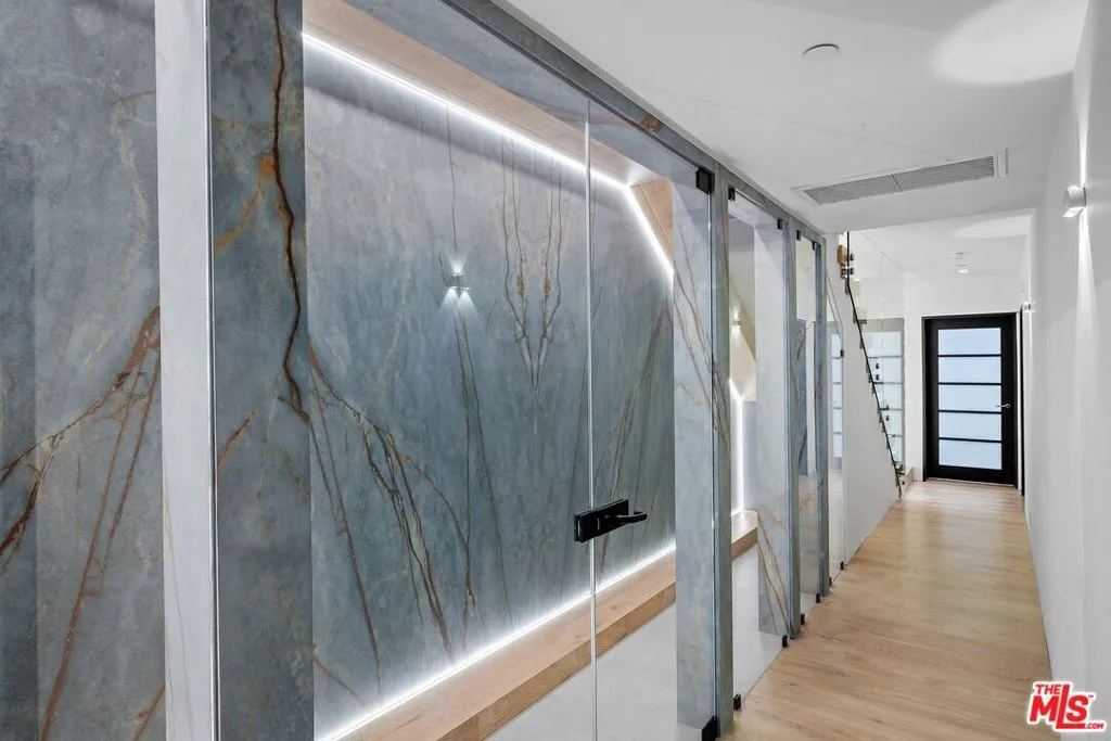 The Castle | A Trousdale Estates estate that must be experienced in person. The Castle is a newly reimagined modern masterpiece located in Beverly Hills 90210, positioned at the end of a quiet cul-de-sac offering exceptional privacy, scale, and views. This approximately 8,800 sq ft luxury home, originally built in 2008 and recently renovated, showcases bespoke, high-end finishes throughout. Soaring ceilings, a dramatic central skylight, and floor-to-ceiling glass create a light-filled interior framing sweeping city, canyon, and peek-a-boo ocean views. White oak floors, custom stonework, and multiple fireplaces add warmth and architectural sophistication at every turn.At the heart of the home, the chef’s kitchen features state-of-the-art appliances, an oversized island, and seamless flow for everyday living and grand-scale entertaining. A skylit gallery corridor leads to the expansive primary suite retreat, complete with a private lounge, designer closets, a spa-inspired bath, and direct access to the pool and grounds. Designed for resort-style living and entertaining, this Beverly Hills luxury estate includes a private theater, executive office, refined bar, climate-controlled wine cellar, and a dedicated wellness wing with sauna, steam room, and massage room, along with staff quarters, each executed to the highest standard. Set on an over 20,000 sq ft lot in Trousdale Estates, the outdoor experience is equally elevated with newly completed stone hardscape, lush landscaping, an infinity-edge pool, multiple fire features, and expansive dining and lounge areas ideal for indoor/outdoor California living and unforgettable sunset views. Moments from Rodeo Drive, world-class dining, and the best of Beverly Hills, 455 Castle Pl presents a turnkey opportunity to own a landmark residence in one of Los Angeles’ most coveted luxury neighborhoods.