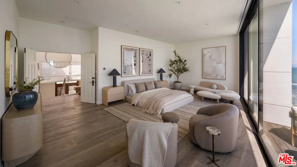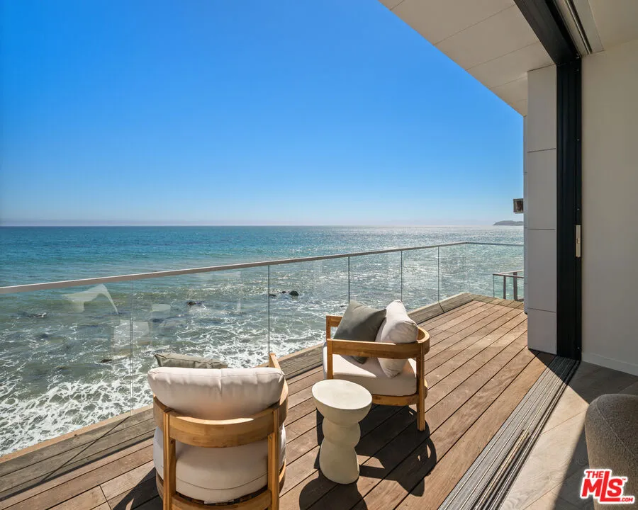 Located behind the ultra exclusive guard-gated enclave of Malibu Cove Colony, this contemporary oceanfront estate offers sophisticated luxury and spectacular beachfront elegance. Step into breathtaking unobstructed views of the Pacific with high ceilings, open floorplan and perfect for entertaining. Every element of this property defines the perfect Malibu escape. The property unfolds to reveal breathtaking ocean vistas, rich European oak flooring, and an interior filled with warmth, modernity, and timeless grace. The main level is thoughtfully designed, featuring two spacious guest suites each with en-suite bathrooms adorned in natural stone and a refined powder room. The two-car garage is equally considered, equipped with custom cabinetry, a whole-home water filtration system, and a 220V EV charger. Floor-to-ceiling glass sliders invite the ocean breeze and endless views. Designed for relaxed spa-like living and elevated entertaining. A large living room/great room is centered around a sleek contemporary fireplace and can be effortlessly transformed into a private home cinema, complete with a hidden recessed projector, dropdown screen, built-in surround sound, and electric blackout blinds. Custom electric shades and blackout blinds provide comfort and privacy throughout the main living space, adapting the ambiance at the touch of a button. This space flows seamlessly into the oceanfront dining area and out to an expansive full-length terrace crafted for sophisticated entertaining and everyday indulgence. Set beneath a cantilevered canopy, the deck offers multiple zones for al fresco lounging and dining with the Pacific as a breathtaking backdrop. The chef’s kitchen is as stunning as it is functional. Anchored by a stone-topped island with bar seating and commanding ocean views, it features custom cabinetry and top-tier appliances including a Samsung smart refrigerator, Sub-Zero wine cooler, Sharp drawer microwave, and a professional-grade six-burner range with griddle. Dual sinks and a walk-in pantry complete with additional Sub-Zero refrigeration and extensive storage ensure the kitchen is ready for both everyday meals and large-scale entertaining. Ascend beneath a dramatic glass-vaulted ceiling to the upper level, where the primary suite awaits an extraordinary sanctuary with panoramic ocean views, a private beachfront terrace, wide-plank wood floors, and a tranquil sitting area. The spa-inspired bath evokes the essence of a luxury resort, with a freestanding soaking tub, rainfall shower, pebble-inlaid stone floors, private water closet, and an expansive custom walk-in closet. The upper level also includes a charming kids’ bunk room with a cozy reading nook and two additional guest suites, each with skylights. On the lower level, a versatile bonus room offers the perfect space for a gym, home office, playroom, or studio. Throughout the home there is intelligent design and modern amenities. At once elegant and effortless, this residence offers an extraordinary opportunity to experience the very best of Malibu beachfront living. Shown to prequalified clients only.