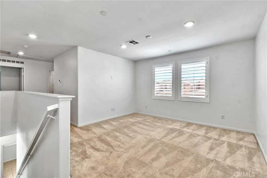 Upstairs, you’ll find a spacious loft perfect for a media room, play area, or second living space. The master suite is generously sized, accompanied by two additional bedrooms. Carpeted flooring provides comfort throughout the second level.